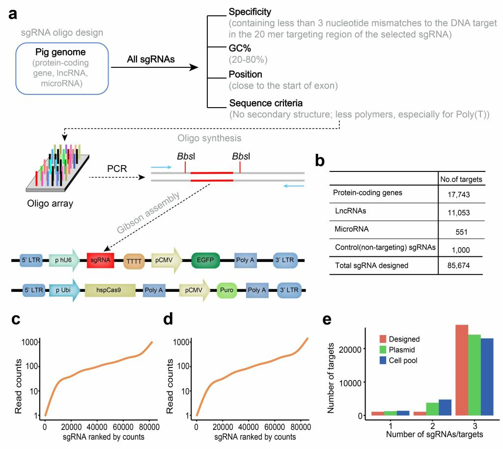 图1.猪全基因组CRISPR敲除文库(PigGeCKO)设计和构建