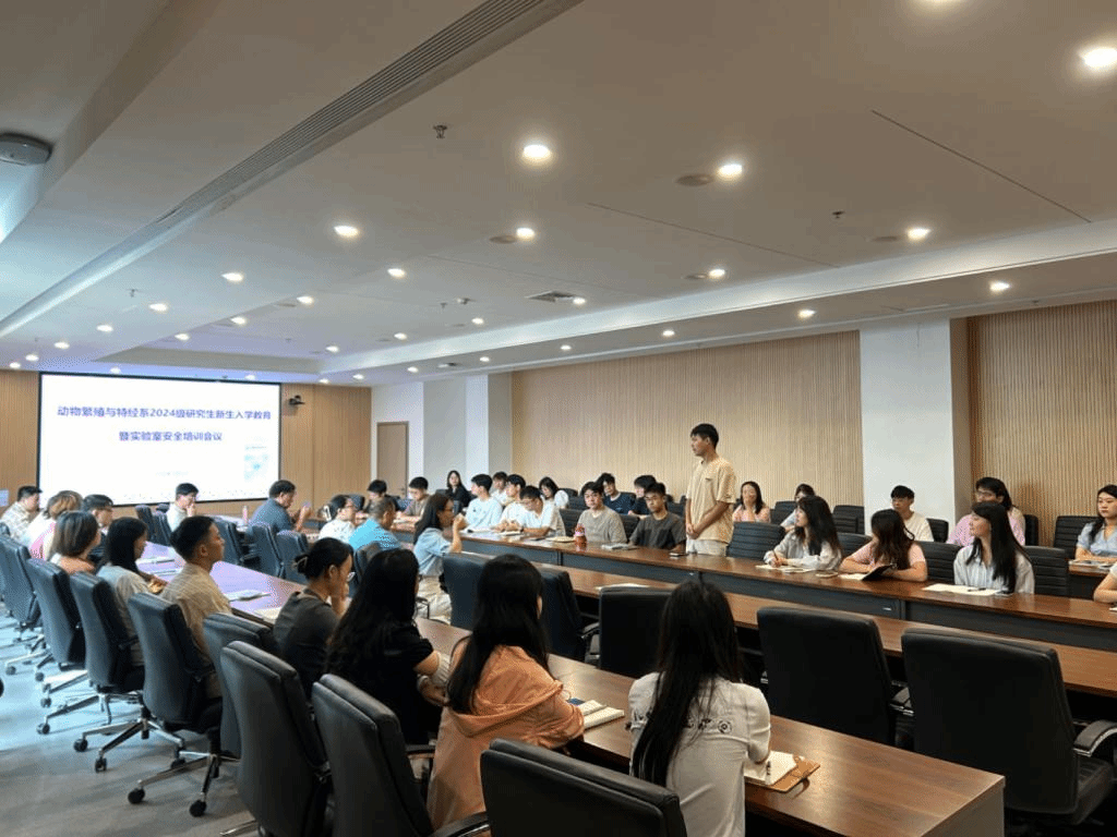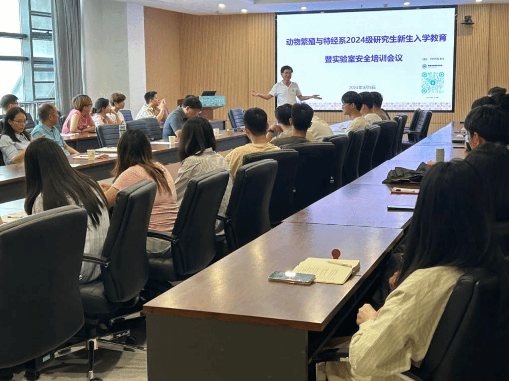 (通讯员 冯雯雯)9月8日上午,我院动物繁殖与特种经济动物学系在第四综合楼D207召开2024级研究生新生入学教育暨实验室安全培训会。杨利国教授、苗义良教授、张淑君教授、滑国华教授、熊家军副教授、李翔副教授、方芳副研究员以及2024级全体研究生新生参加了本次会议。会议由梁爱心副教授主持。
