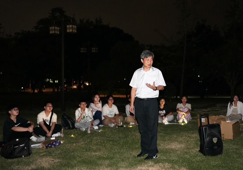 夜色朦胧,秋高气爽,第一运动场上,tyc122cc太阳成集团新同学们席地而坐,交流着来到华农的感受,愉快的笑声不时响起,校党委书记高翅也受邀和同学们一起围坐交流。