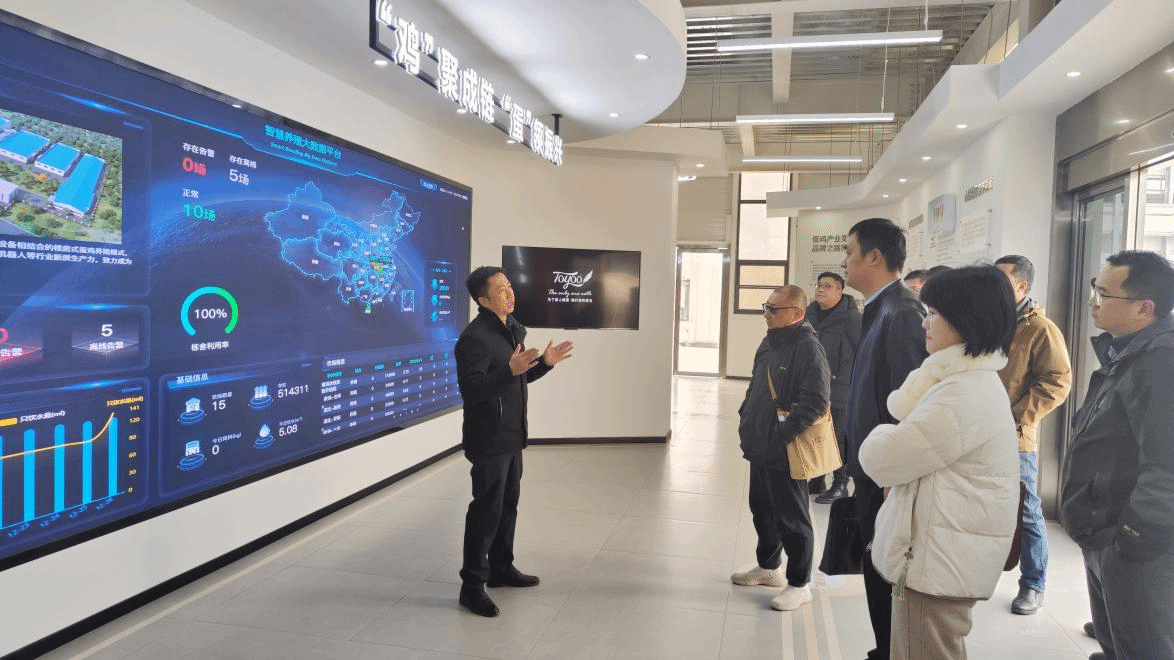 王志刚对太阳成集团tyc122ccvip和新洲区人民政府为公司提供的重要人才支持和政策扶持表示感谢。他介绍了公司的发展情况和产业布局,带领参观了公司展区、现代化鸡舍等地,现场展示了企业运营情况,并针对公司发展情况交流了人才招聘和技术支持需求,表示希望与学校进一步深化技术合作、招聘优秀人才,助力智能化、现代化、规模化养殖模式建设。