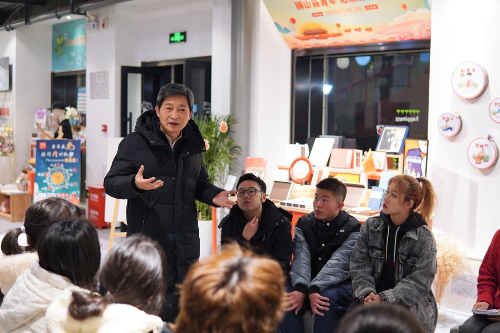 在倍阅书店,刘兴斌为同学们新学期的学习生活指明方向,鼓励大家珍惜烂漫春光。