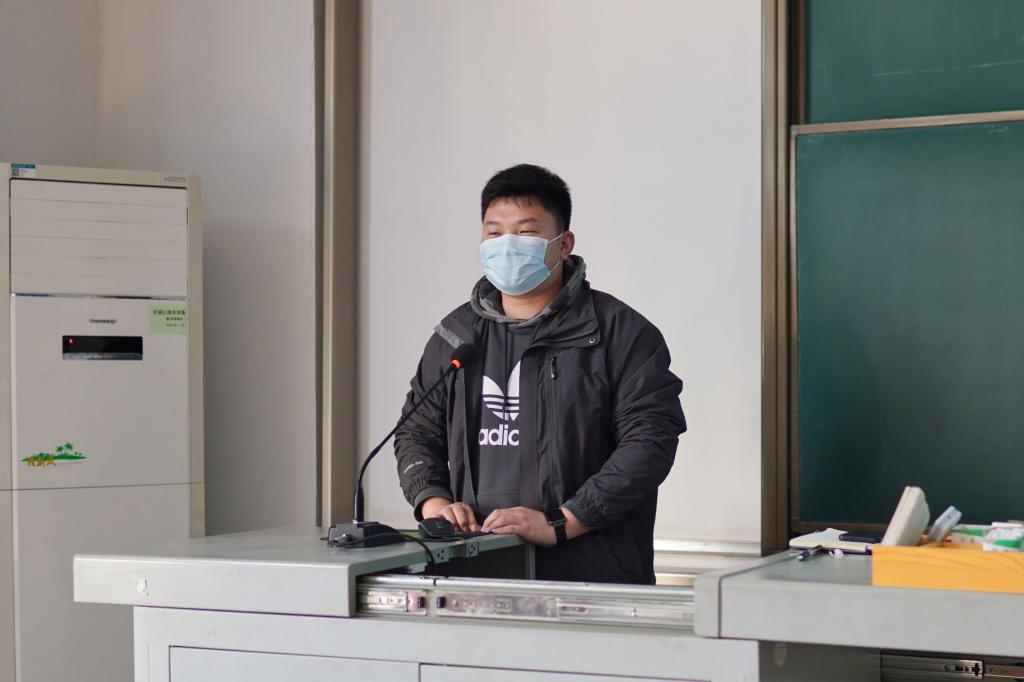 程唐煜重点向在场同学讲述调剂过程中的注意事项。他结合往届部分学生无法及时获取复试和调剂消息的案例,向与会成员介绍了两种有效获取信息的途径:学校、省组织部官网和所加入的联系群聊。最后,王运涛对毕业年级表达美好祝愿:“希望每一位同学都能找准人生定位,实现人生理想。”