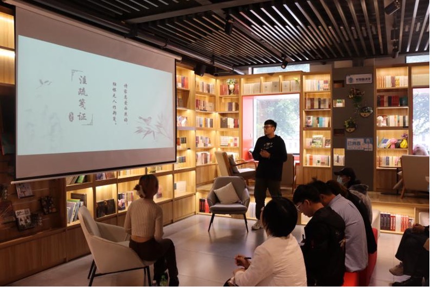 分享环节中,周瑞和邱恬恬介绍了《三体》三部曲跌宕起伏的故事,分享了挫折与逆境造就强大生命的感悟。沈琦以身临其境的方式,带领大家走进《偷影子的人》。“解的是别人的忧,却填补了自己心中漏洞”。何艳飞在分享《解忧杂货铺》时,如是说到。吕少然分享了《局外人》中富有哲理的语句和《有毒》中的精彩叙述片段。刘耘洁以日本作家朱川凑人的系列书为落脚点,带领大家于鬼异都市传说中窥探人性温情。李家琛从《花间集》出发,漫谈唐宋词,引导大家了解词的发展历史,品鉴优美词句,体会词中人生百态。曹华分享了自己在阅读《犬猫临床血液生化学》时豁然开朗的经历。陈柳泉带来的《沉思录》揭示了要“遵从自然生活,按照本性生活”的道理。