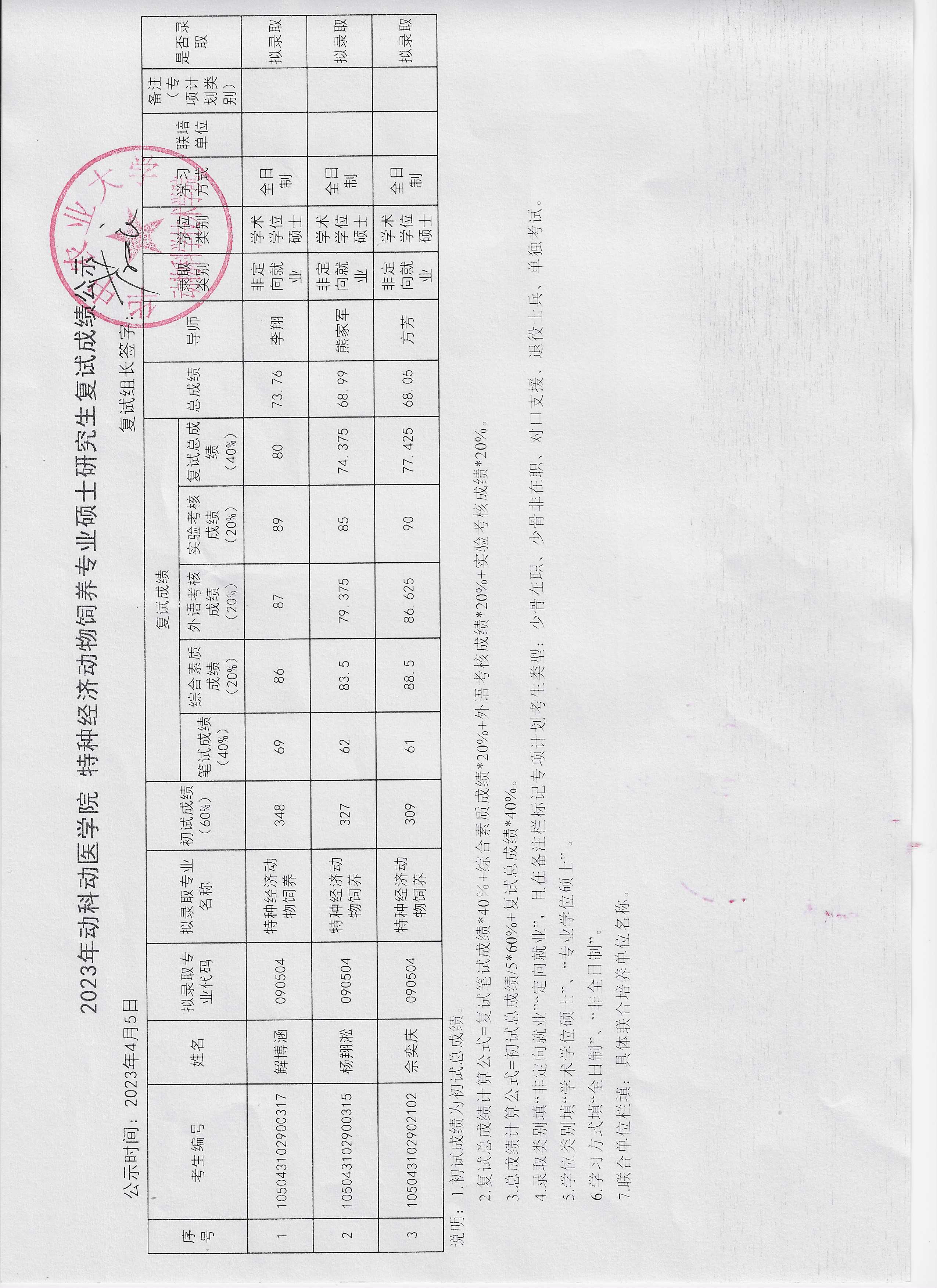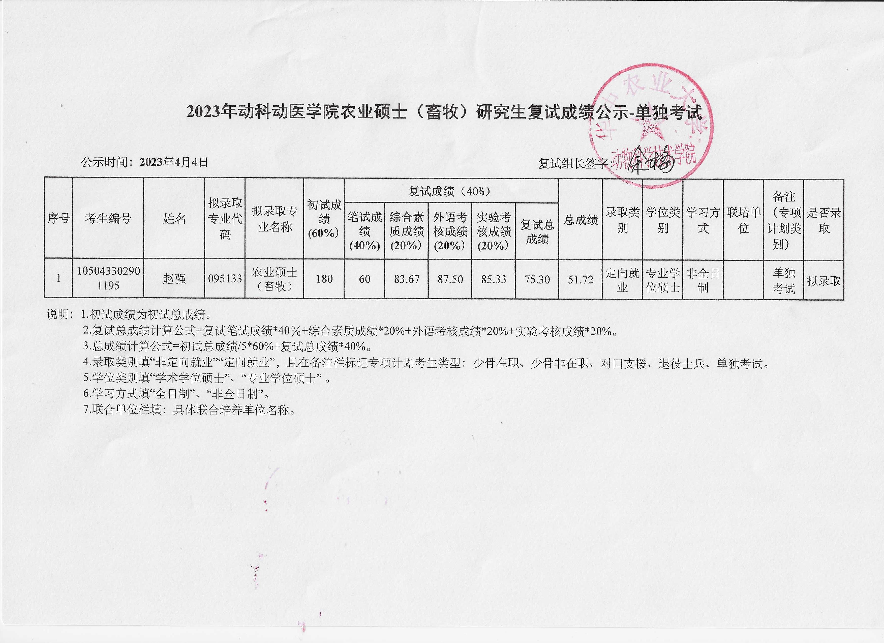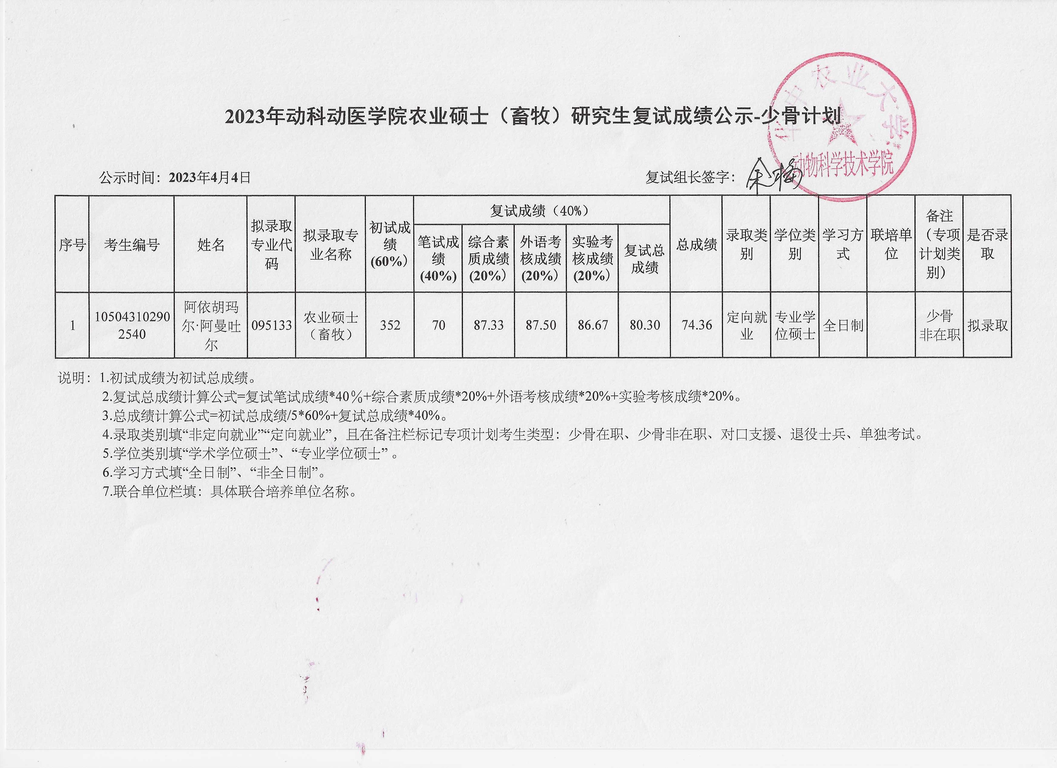 农业硕士(畜牧)复试成绩公示-少骨计划