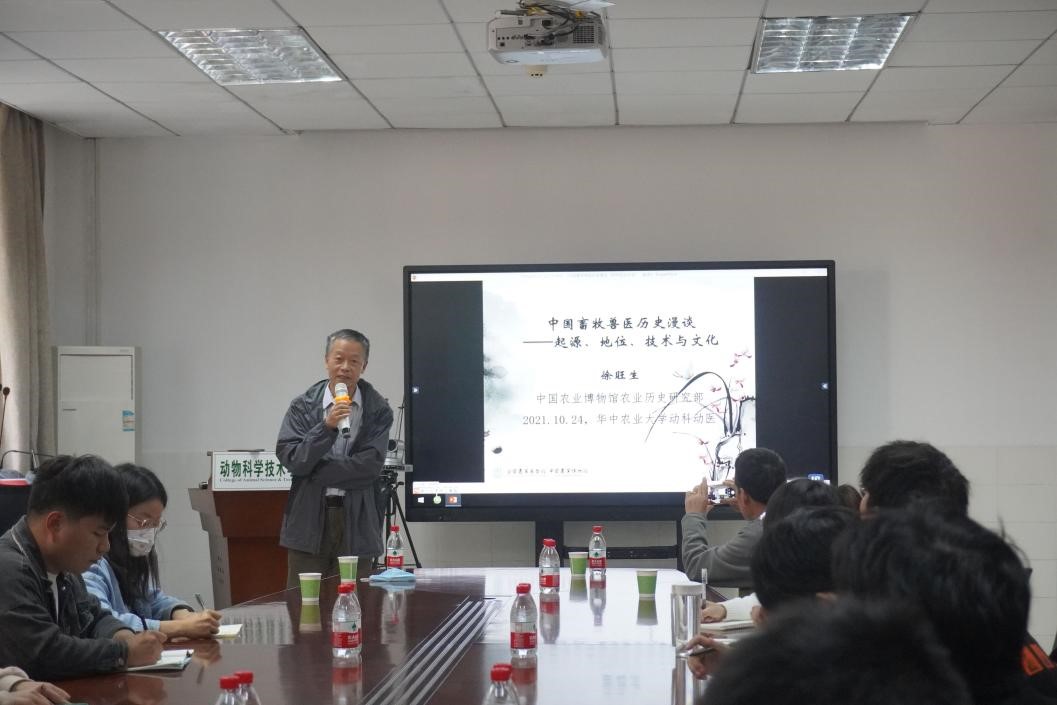 (通讯员:孙令高)10月24日下午,中国农业博物馆研究员、中国农业历史学会顾问、我校79级优秀校友徐旺生应邀做客动科动医学院,带来了题为《中国畜牧兽医历史漫谈》的专题报告。动科动医学院专业硕士人才培养改革班全体在校学生参加了此次报告会。