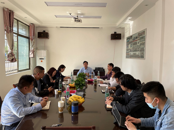 首先,何信龙董事长主持了“专家工作站”揭牌仪式,由何启盖教授、何信龙董事长和杨丽局长共同完成揭牌仪式。随后,公司与县科技局举行座谈会。会上,何董向县科技局代表和华农师生介绍了公司发展历程、改制沿革,并汇报了公司现状和近年工作情况。杨局长对我校师生今天的到访表示欢迎,期望有更多的高校师生参加公司工作,并对公司发展提出几点要求。一是要做好高新技术企业培育工作,加强专利申请;二是要建成省级企校联合创新中心,通过加强校企合作申报省级、国家级科研课题;三是要落实好科技项目“揭榜制”,公司提出技术难题或重大需求,在商报省科技主管部门发榜后,由科研院校等机构进行揭榜攻关。最后,何教授总结道,品种是养殖行业的卡脖子问题,公司育种实力值得肯定,要不断通过选育培养优质的种猪;同时公司接受科技部门的指导,要做好定期汇报,将公司建成集人才培养、教学实践、科研试验、养殖示范于一体的综合养殖基地。