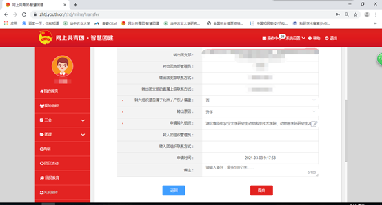 (4)学院团工委将会在系统中进行“组织关系转接审批”,完成团组织关系转接流程;
