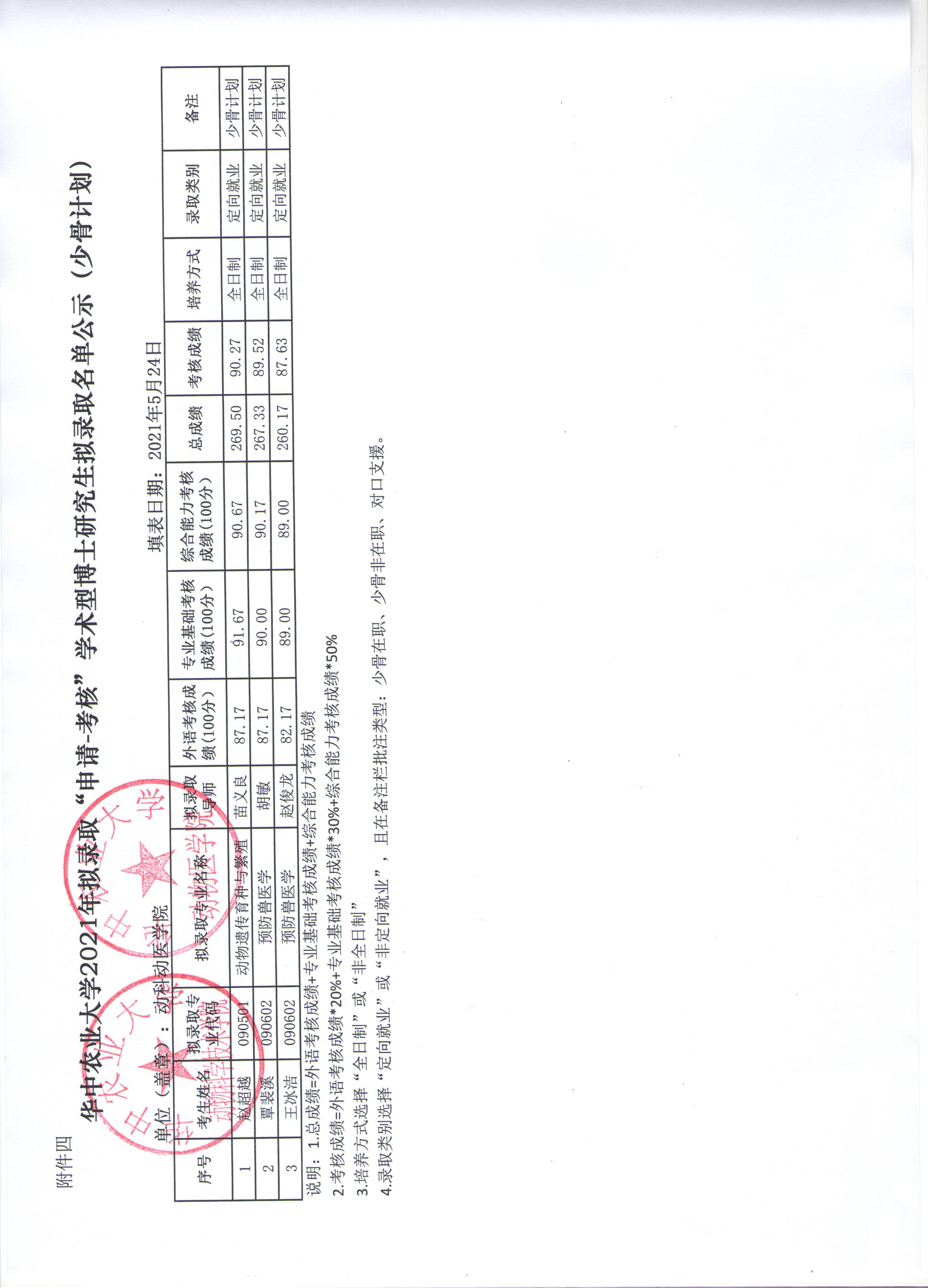 动科动医学院2021年“申请-考核”博士研究生拟录取名单如下(点击文字,下载文件查看,陆续更新中):