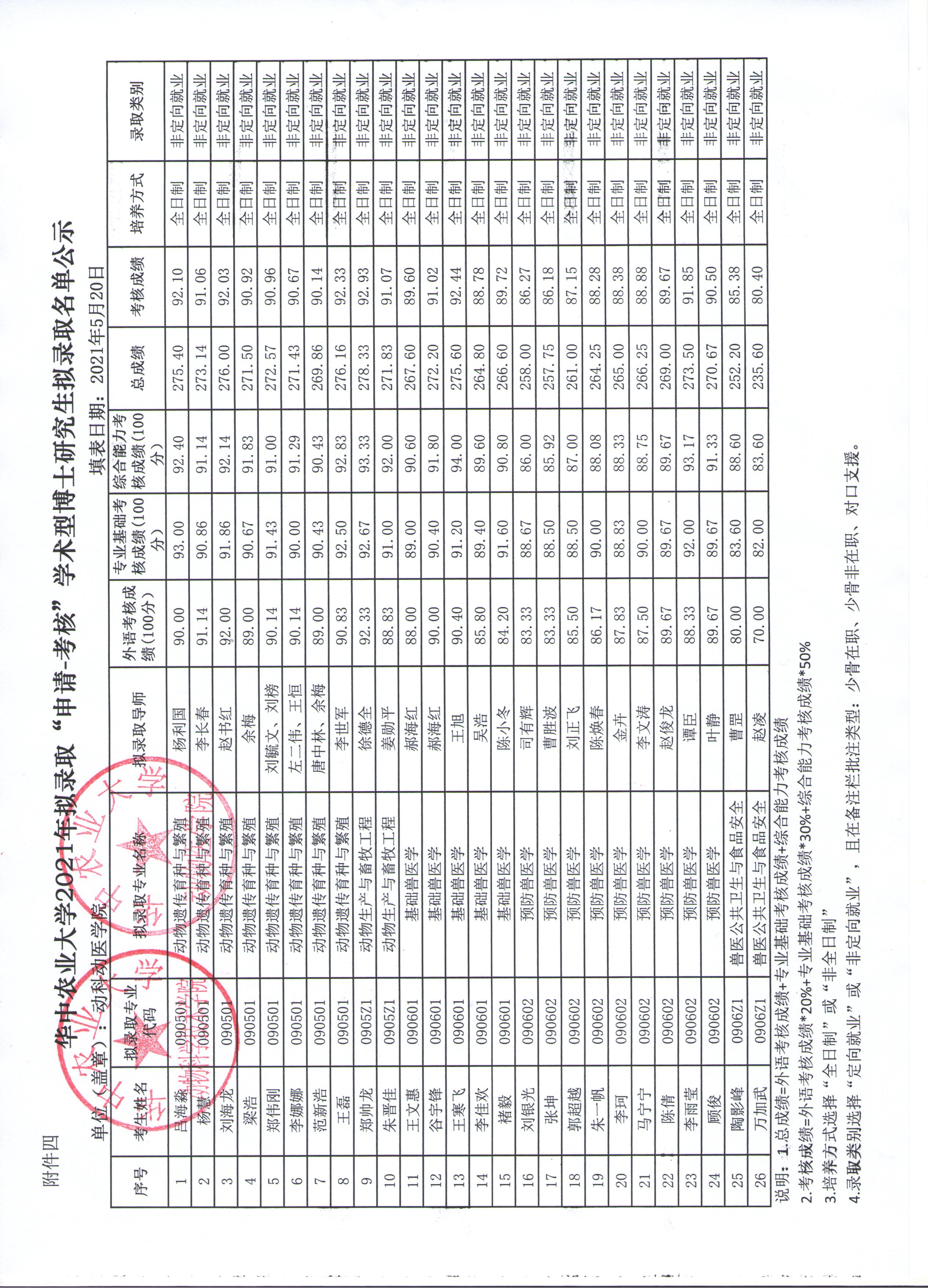 动科动医学院2021年拟录取“申请-考核”兽医博士专业学位研究生名单