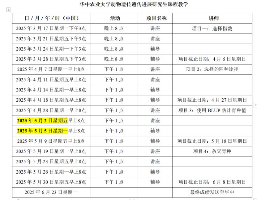 学院现面向同学们开放《动物遗传育种进展》课程的选课。本课程将由梅西大学的专家进行线上授课。