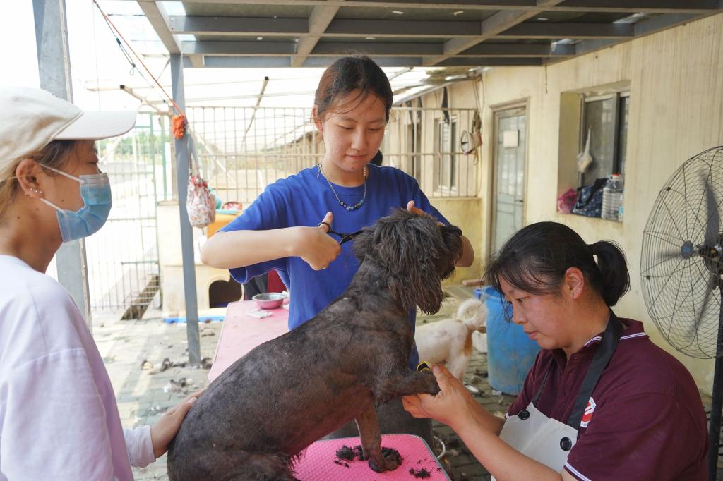 在工作人员指引下,志愿者们在动物基地参观了动协领养的动物,期间,工作人员从动物的姓名、来历以及性格等方面向参观者介绍动物的相关情况,他谈道:“目前,流浪动物对社会环境带来的消极影响日趋显著,部分社区及高校已采取‘动物绝育手术’的方式来应对这一现状。”在随后的“喂食”与“修毛”环节,志愿者们与小动物进行近距离“互动”,“在与动物的相处过程中,既能提高自己认知情感,又能为改善社会环境贡献一份力!”志愿者王佳琦说道。