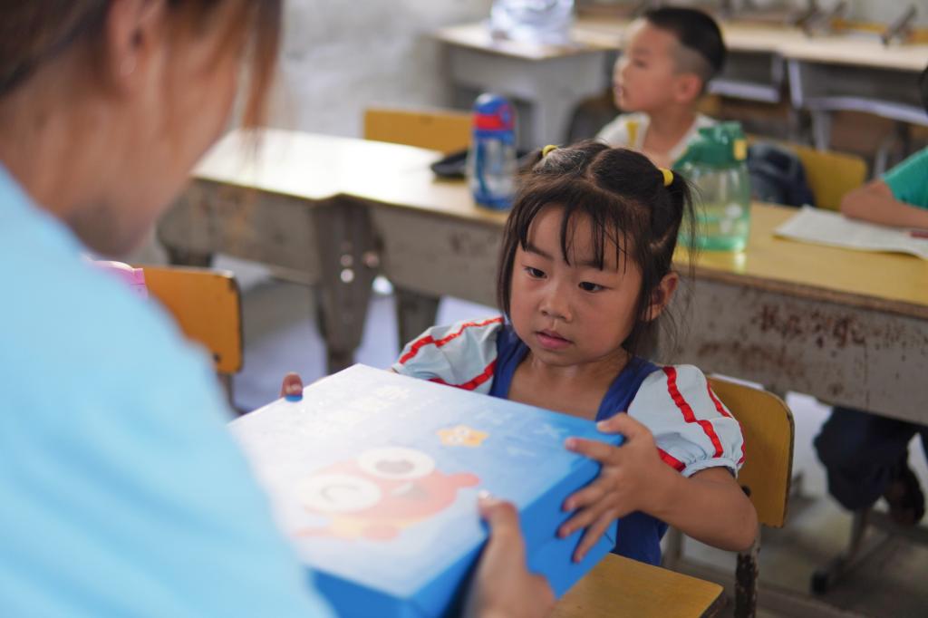 得知支教队员们准备了“神秘礼品”后,孩子们翘首以盼,难掩兴奋:“老师,我们的礼物是书本吗?”“我猜是一定是学习用品!”“我猜是玩具!”拿到“礼品”后,孩子们迫不及待地拆开。