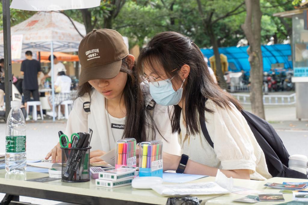 “这次举办的活动我觉得十分有意义,我感受到了他们的热情与陪伴,让本来因为考试临近而紧张焦虑的心情得到了缓解。”动医2005班的杜知航开心地说道。本次活动内容包括:“知我——做自己生活的诗意人”、“信我——相信自己的每一个选择”、“诉我——表达出自己的真实想法”和“本我——回归到自我的存在之中”。现场同学可以自行发挥创作,根据工作人员提供的歌词或者文字素材进行裁剪拼贴,组成一句诗词或者话语,来表达自己内心的情感。参与者向工作人员展示自己的作品,“盒子里是彼此拥抱的快乐”“轻描淡写地出现在你我的生活”“通过海风,听见你的声音”,字字句句中充满着诗情画意和放飞的想象力。学生们也可以利用手机自带的NFC功能写入一首自己想要播放的歌曲,闭上眼睛,细细聆听,回归本我。音乐和诗句相互交融,浪漫自在的因子在空中弥散。