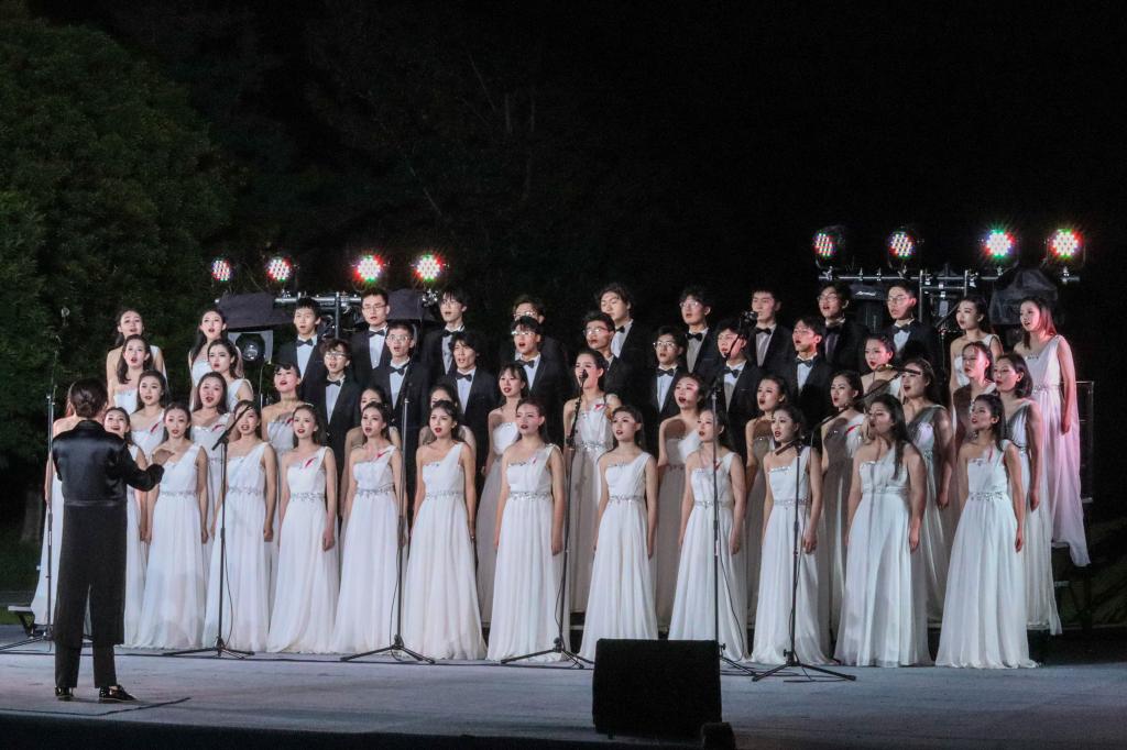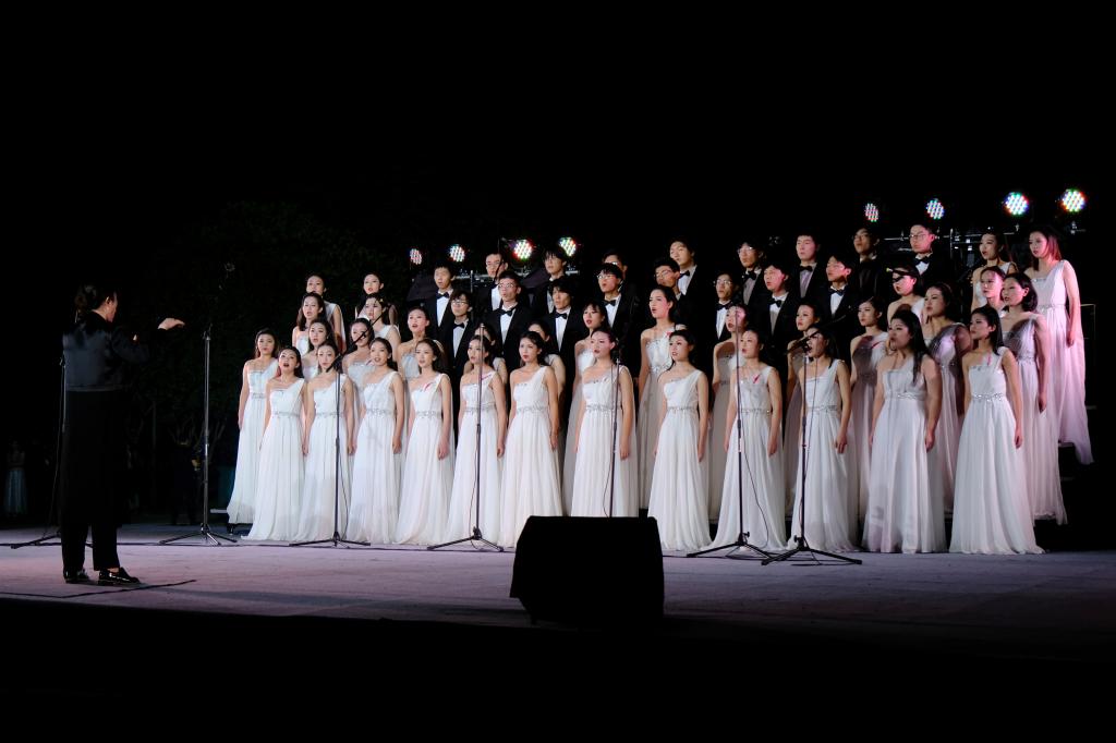 随后,“五月的花海”合唱比赛正式开始。来自14个学院的合唱团和我校大学生艺术团小宇宙合唱团共同唱响“原野华光”。