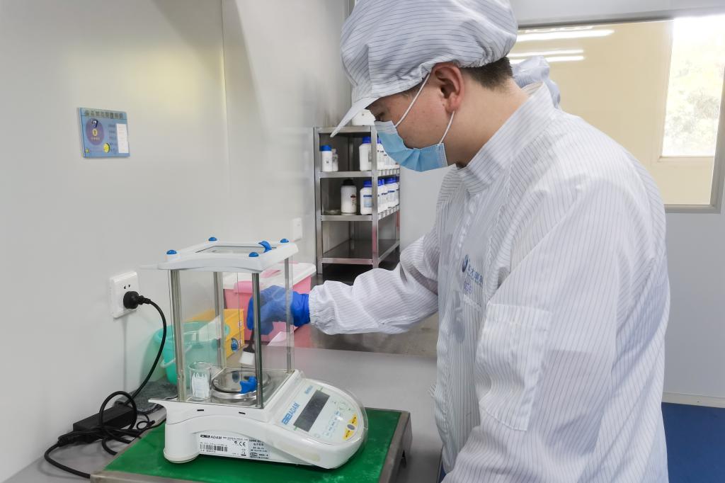 负责人张英俊在进行称量示范