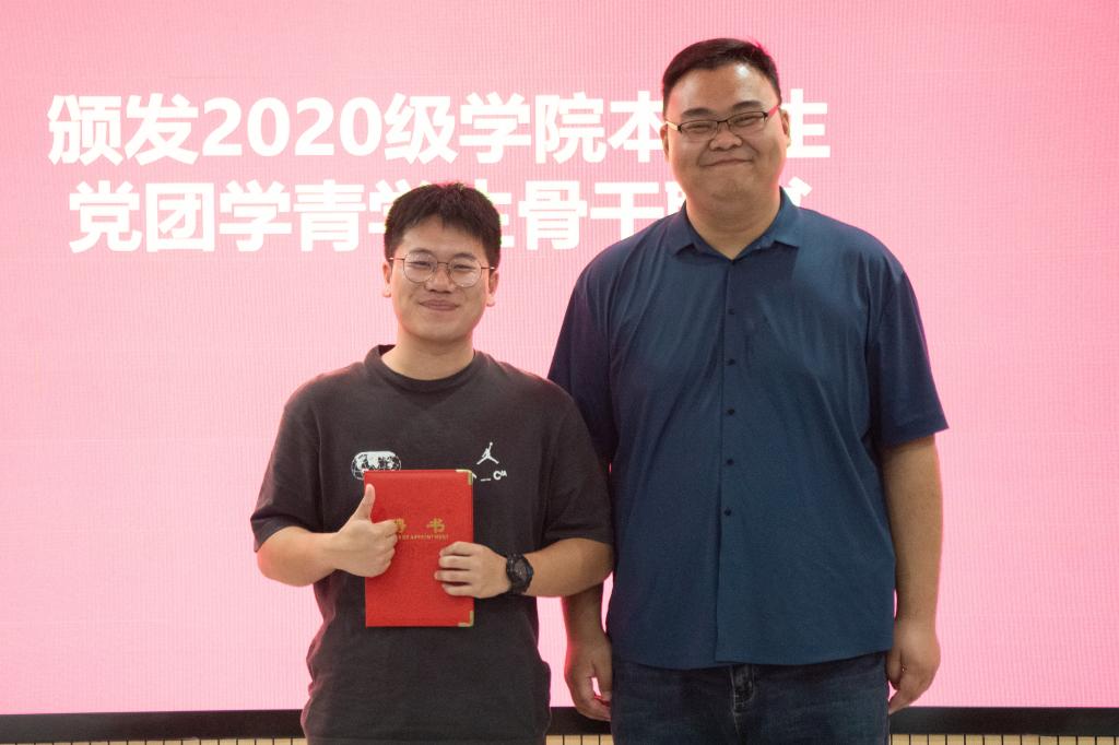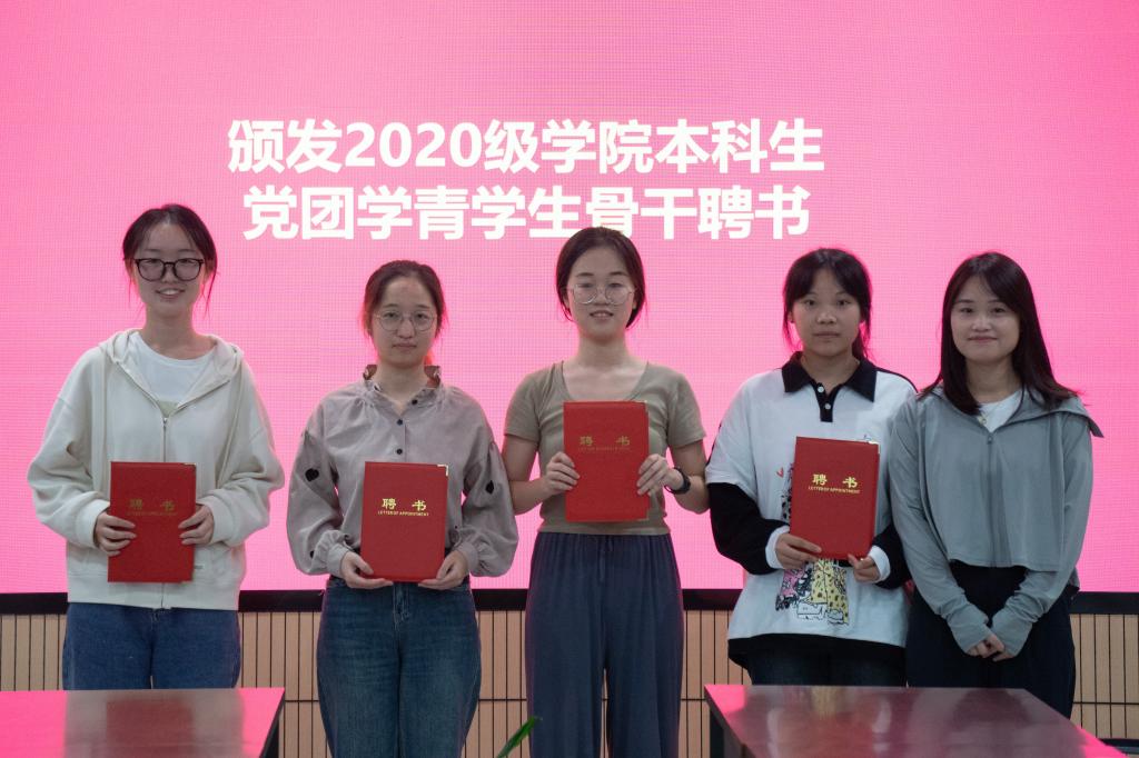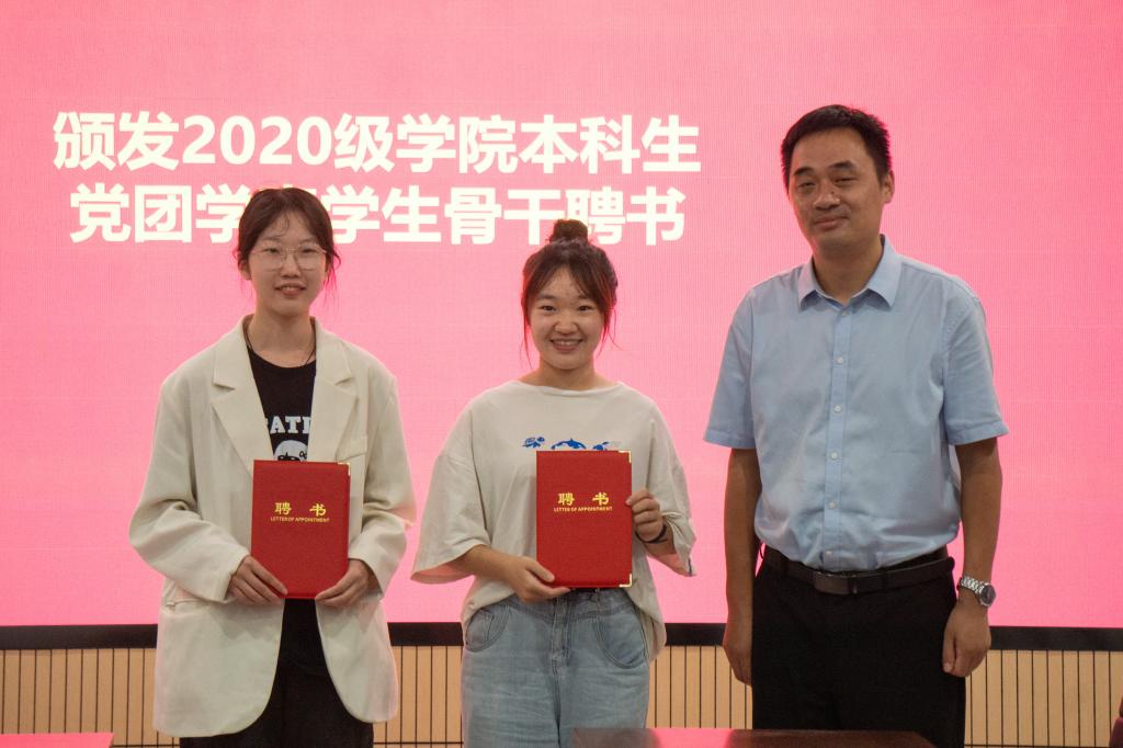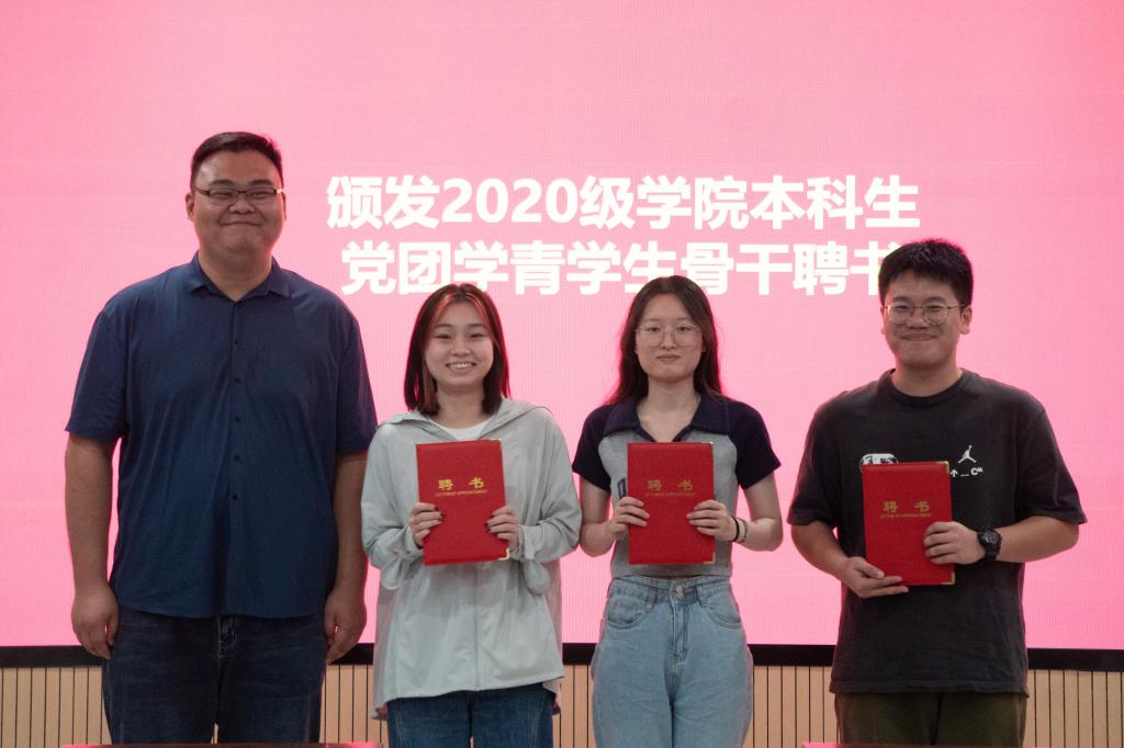 随后,谭力铭和汪昱均为2020级学院本科生党团学青学生骨干颁发聘书并进行合影留念。