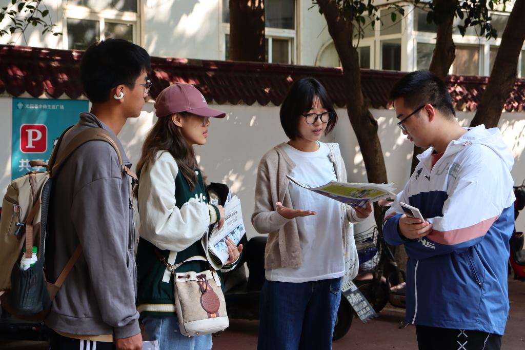 10月22日上午,牧医阳光志愿服务队前往华中师范大学,与华师志愿者汇合,共同布置场地、统筹安排,为义卖活动的开展做好充分准备。志愿者们将准备好的报纸和小动物盲盒在校园多处摆摊义卖,同时他们向路人热情介绍小动物保护的现状和意义,引得路人纷纷驻足聆听,并购买报纸和盲盒,为小动物保护贡献力量。此外,更有不少同学和老师愿意捐献额外的善款来帮助小动物,这抹深秋的温暖深深感动了志愿者们。虽然本次义卖活动遇到了多重困难。例如志愿者们的邀请遭遇拒绝、志愿者们对校园线路不熟悉导致迷路等,但是凭借团结一心、互帮互助的品格,志愿者们都克服了困难,顺利完成本次义卖。
