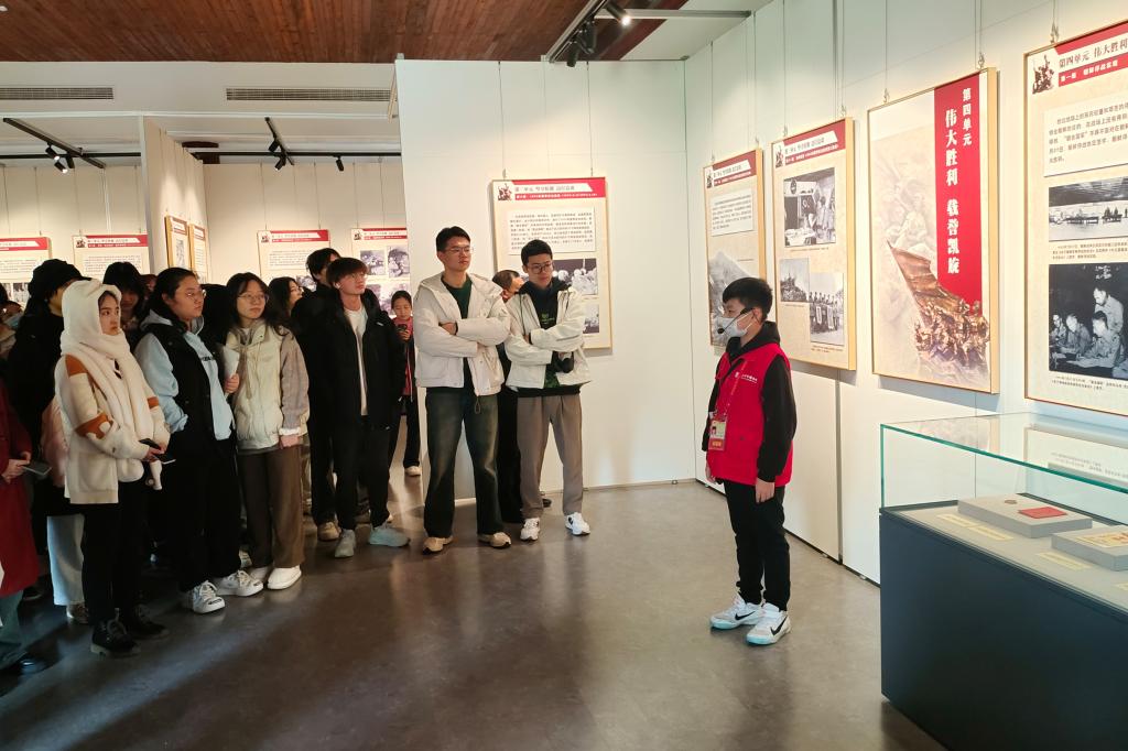 在中央农民运动讲习所二楼历史陈列厅中,墙上的《中央农民运动讲习所开学宣言》开篇明义:中央农民运动讲习所要训练出一班能领导农村革命的人才。在国共合作基础下建立的武昌中央农民运动讲习所,是一所重视学生思想政治素质提升、要求学生“做一个农民阶级的革命先锋,要为农民的利益牺牲一切”的学校。其教学活动实行政治与军事并重,理论与实践结合;力求培育出习文练武、知行合一的学生。参观后,动科2102班韩妙麒谈到自己的学习感悟:“红色记忆需要追寻,红色精神需要传承。作为享受到革命成果的00后,我很难去亲眼看到共产党前期艰难创业的过程,很难去感受他们为救亡图存所经历的困苦,很难去体会从萌芽开始一点点成长的不易,但我能从今天参观的故事里感受到那个时代的血性、感受到他呐喊出的希望。总而言之,那个年代的事迹值得我们去深读、精读,并以此作为自己持续不断的精神动力,去面对未来的挑战!”他表示,今后将常常学习蕴含在珍贵历史文物、纪念馆展馆背后的伟大精神,坚定理想信念与远大理想,不忘来时路,勇毅向前行。