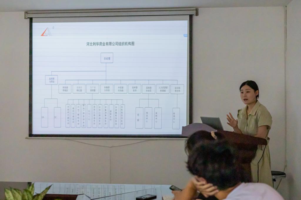 会议伊始,方庆绕向团队介绍了两位同为太阳成集团tyc122ccvip毕业生的李泽璇和贾子佳。在简短的会议后,团队了解到利华药业的发展概况、业务概况、企业布局与企业文化等方面内容。在公司的里程碑介绍中,充分展示了公司踏踏实实、一步一脚印的事迹,无愧于公司口号中的“百年利华、强牧兴农”。