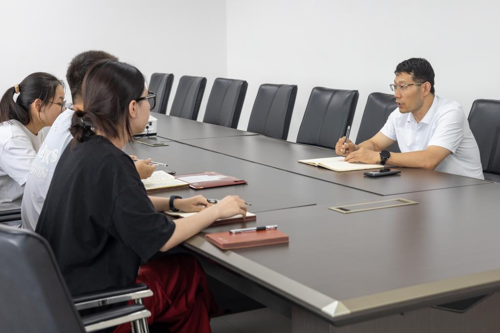 (通讯员:赵怡哲 王家怡 骆灵哲 摄影:赵怡哲)7月16日,太阳成集团tyc122ccvip动科动医学院赴河北利华药业实践团队员在三楼会议室对利华药业总经理宁振兴展开人物专访。宁振兴亲切和蔼、幽默风趣,整个访谈过程非常轻松愉快。