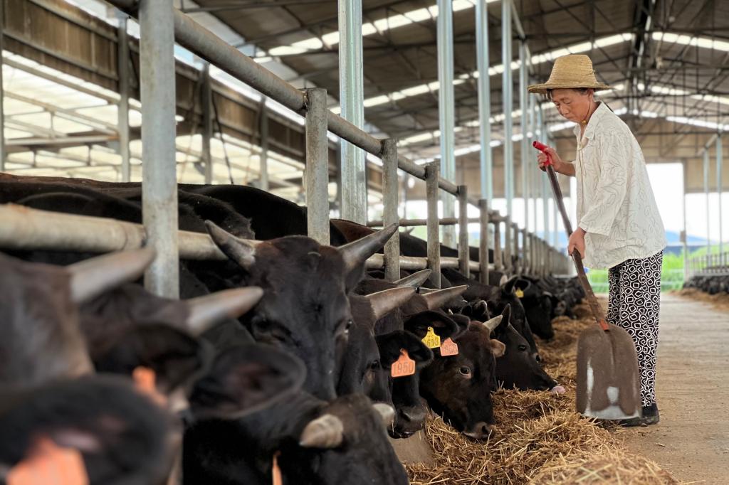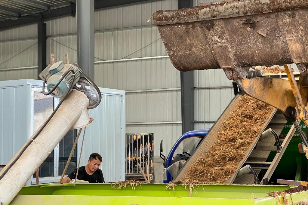 饲料的自动化生产大致分为以下六个步骤:粉碎、加工、储存、配料、称重、搅拌,通过自动化生产线,多种原料被加工为不同配比的精饲料,再放入搅拌机与粗饲料混合后输出为牛的饲料进行饲喂。陈礼明厂长介绍:“丰联佳沃企业正在实现饲料精加工自动化,生产线所需人力很少,仅需一个人便能完成全部加工操作。