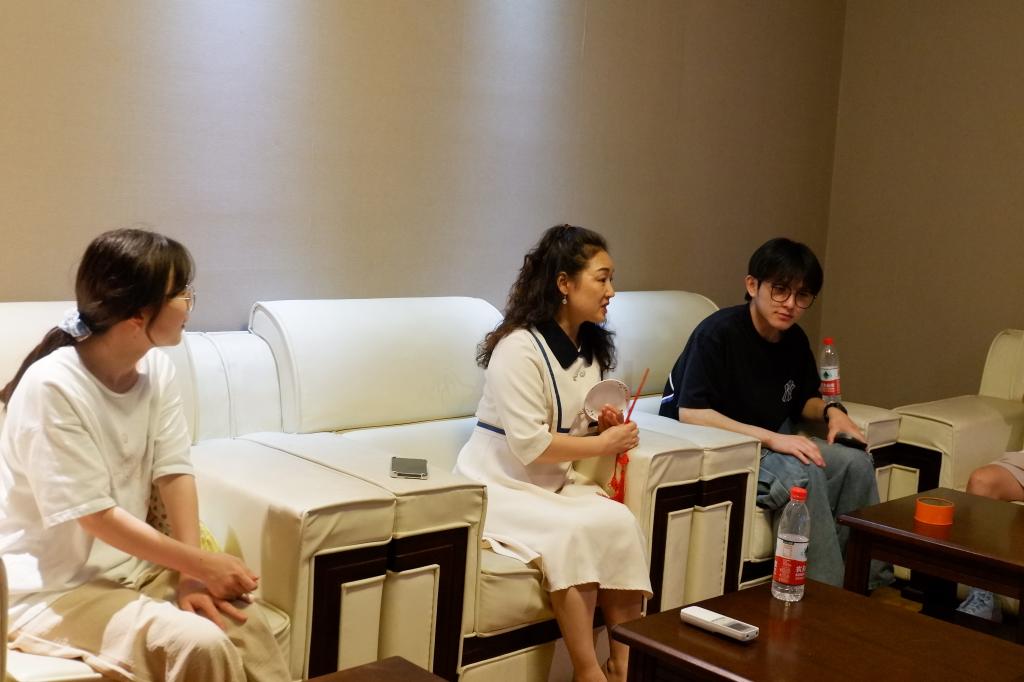 实践首日,团队一行前往武汉市江岸区,拜访了武汉说唱团的资深艺术家姚俐玲老师。姚老师以其精湛的湖北小曲表演,让团队成员们仿佛穿越回那个韵味悠长的年代。在姚老师的指导下,同学们不仅观看了精彩的演出,还深入了解了湖北小曲的历史渊源、艺术特色及传承现状。通过采访,大家深刻感受到非遗文化背后的故事与坚守,更加坚定了传承与发扬传统文化的决心。