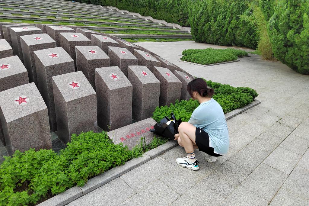 拾级而上,实践团成员们逐一参观学习烈士们的英雄事迹。石碑上的文字铭刻着烈士的姓名、战斗经历和牺牲年月。实践团成员孔润新表示:“烈士们为了民族解放和国家独立,勇敢地献出宝贵的生命,我们要带上这份信仰,砥砺前行。”