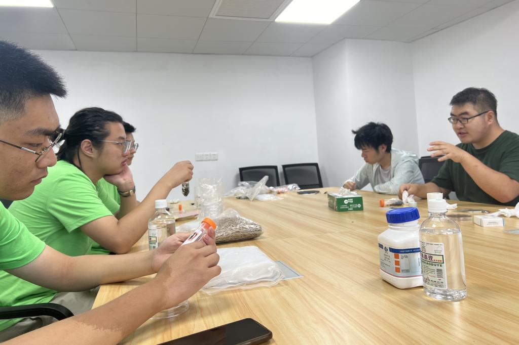 在动手解剖前,袁成为实践队员分发了精心准备的学习资料,并细致介绍解剖蜜蜂的关键步骤和技巧,确保每位队员都能准确掌握具体操作。接下来,实践队员将蜜蜂的精细部位逐一分离并精心摆放于载玻片之上,深刻洞察蜜蜂的生命结构。初次解剖,实践队员在袁成的悉心指导下,逐渐克服了初期的生疏,掌握了解剖的精髓,每一次下刀都更加精准,每一次观察都更加深入。最终,实践队员们成功依次分离出前翅、后足、口器、第二背板、第三腹板等精细结构并进行详细记录,内心的成就感油然而生。