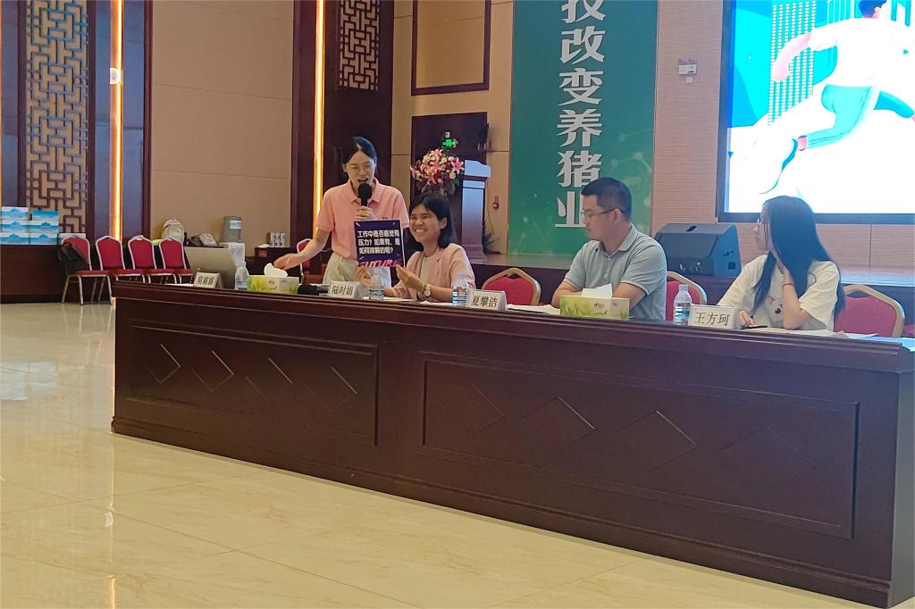 论坛进入交流环节,主持人莫霜露对每位嘉宾的分享进行了精炼总结,确保营员们能够充分理解并吸收核心要点。随后,三位嘉宾详细解答了营员们提出的问题,包括如何有效应对职场压力、职业成长中最感恩的对象,以及工作中的趣味经历,进一步体现扬翔股份浓厚的“家”文化。