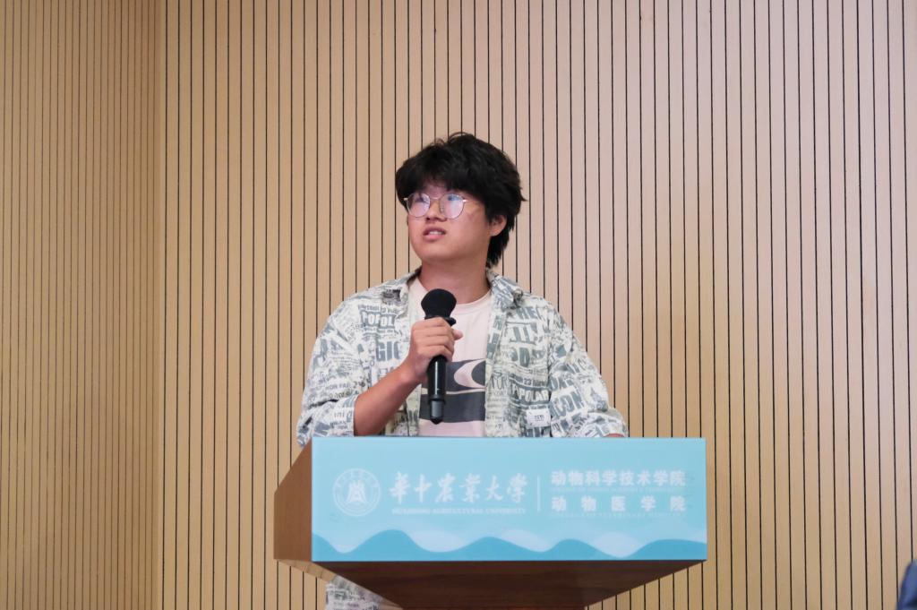 张沃野介绍了动科动医学院的办学历史、科学研究及特色项目。历经百年发展,动科动医学院畜牧学、兽医学入选“双一流”学科。除了专业建设,动科动医学院还致力于打造丰富多彩的校园文化活动,“骨骼拼装大赛”“狮山寻宝”等特色活动在同学们中广受欢迎,充分展现了动科动医学院的学科特色和青年风采。