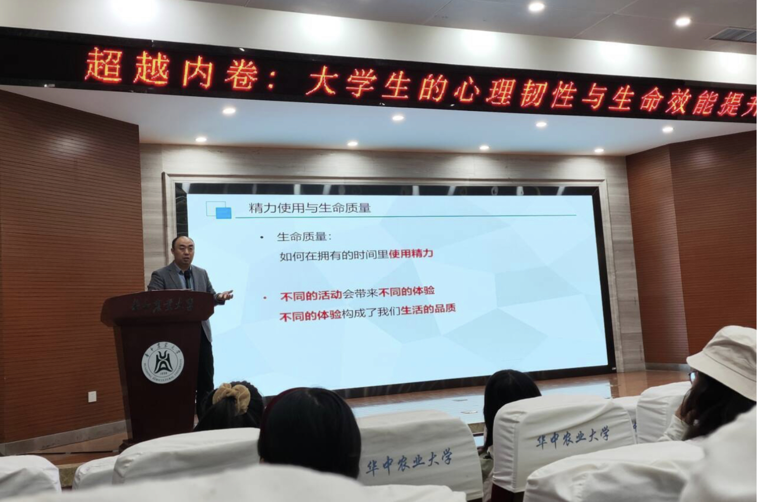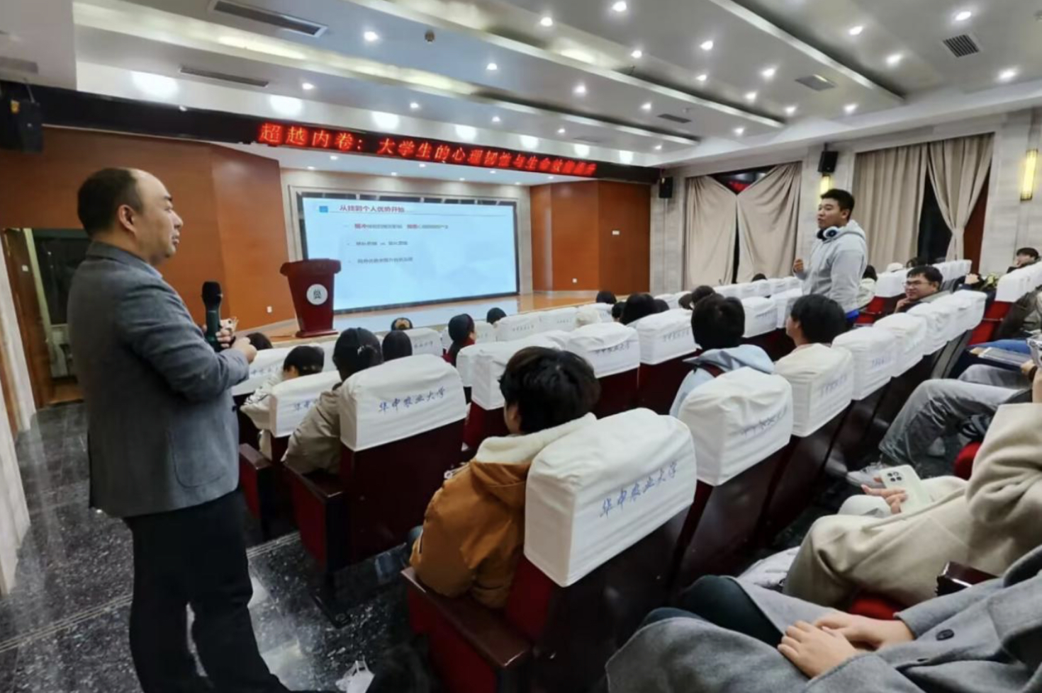 (通讯:胡家烨 摄影:舒艺璠)11月19日晚,我校大学生心理健康教育中心主办、动科动医学院主承办、经济管理学院与园艺林学学院联合承办的第175期“狮山心旅”系列心理讲坛在学生综合服务楼501报告厅顺利开展。本次讲座以“心理韧性与生命效能提升”为主题,邀请中南财经政法大学青少年心理发展研究所所长杨子云教授担任主讲,2024级全体心理委员参与了本次活动。