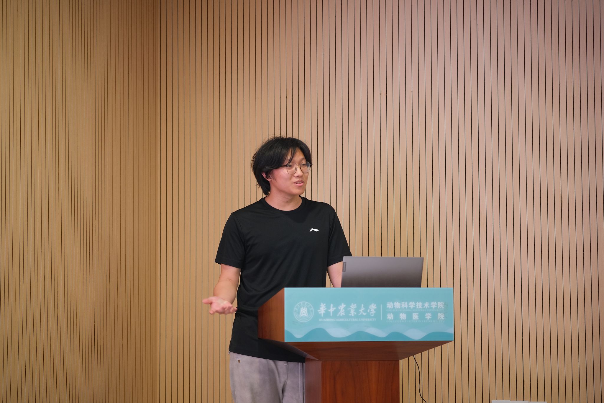 在心得分享环节,生命科学技术学院学生团委副书记郭博就中央一号文件对粮食安全的部署,列举生命科学技术学院在本科实习、科研成果及竞赛活动方面的研究优势,提倡构建人文生科,培育三农情怀。