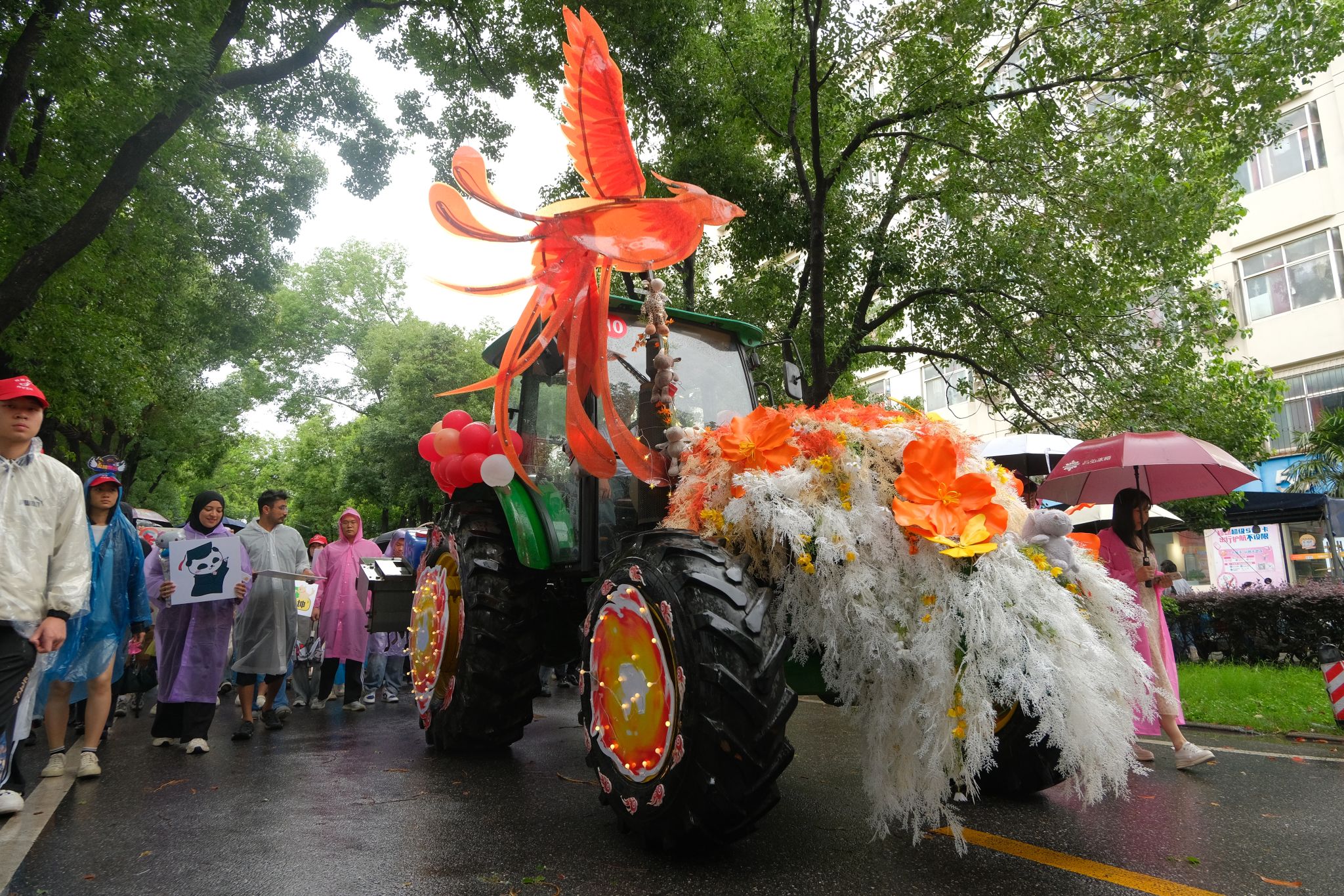 瓢泼大雨中,参与巡游的牧医学子仍热情饱满。他们手持各类应援物品,脸上洋溢着青春的笑容,跟随着花车的行进轨迹,高喊“毕业快乐”。动科2301的李雪说道:“这次巡游活动让我感受到了动科动医学院不一样的风采,花车的造型设计的很用心,同学们也非常有活力。”