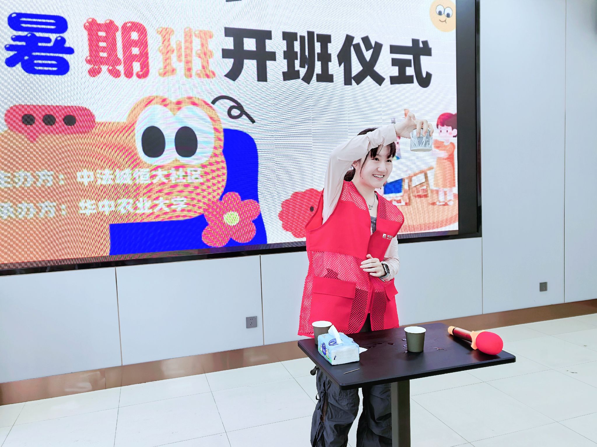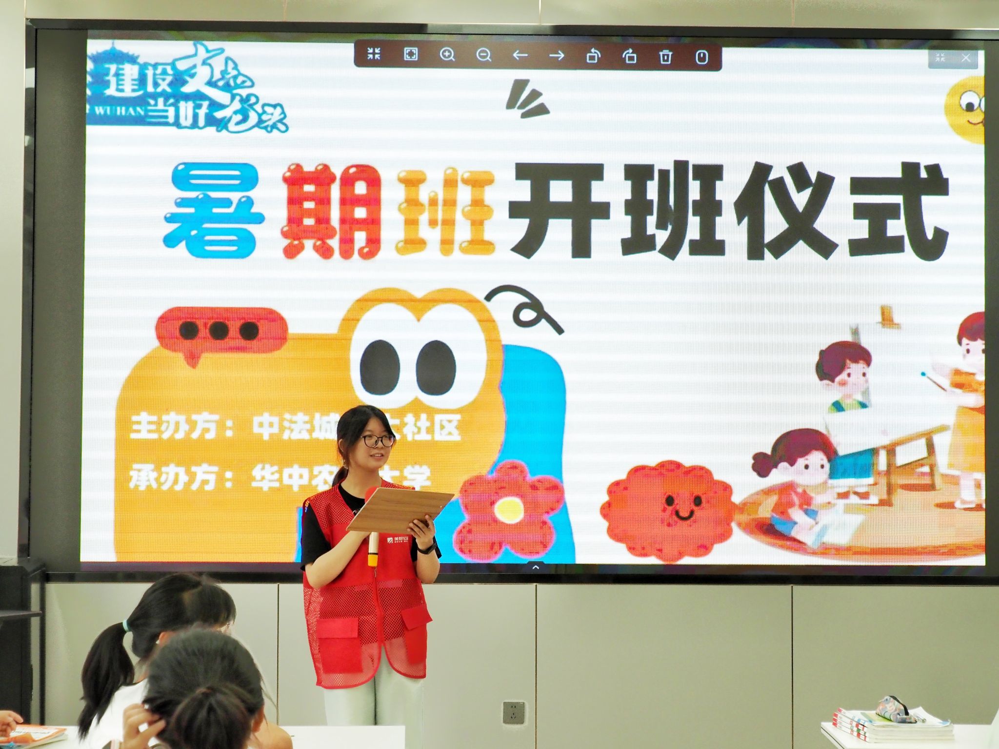 上午9时,暑期托管班开班仪式在社区活动中心举行。实践队队长耿晨向到场家长与儿童详细介绍了实践队的成员以及为期两周的课程规划。内容涵盖科学启蒙、学业辅导、科普教育等板块。随后,耿晨配合恒大社区网格员冯莎莎进行点名工作。点名环节中,“到!”的清脆应答声此起彼伏。为快速熟悉每位小朋友的姓名,实践队设计了身份卡牌制作活动,耿晨向小朋友们讲解制作流程后,指导他们在彩纸上写下自己的名字。