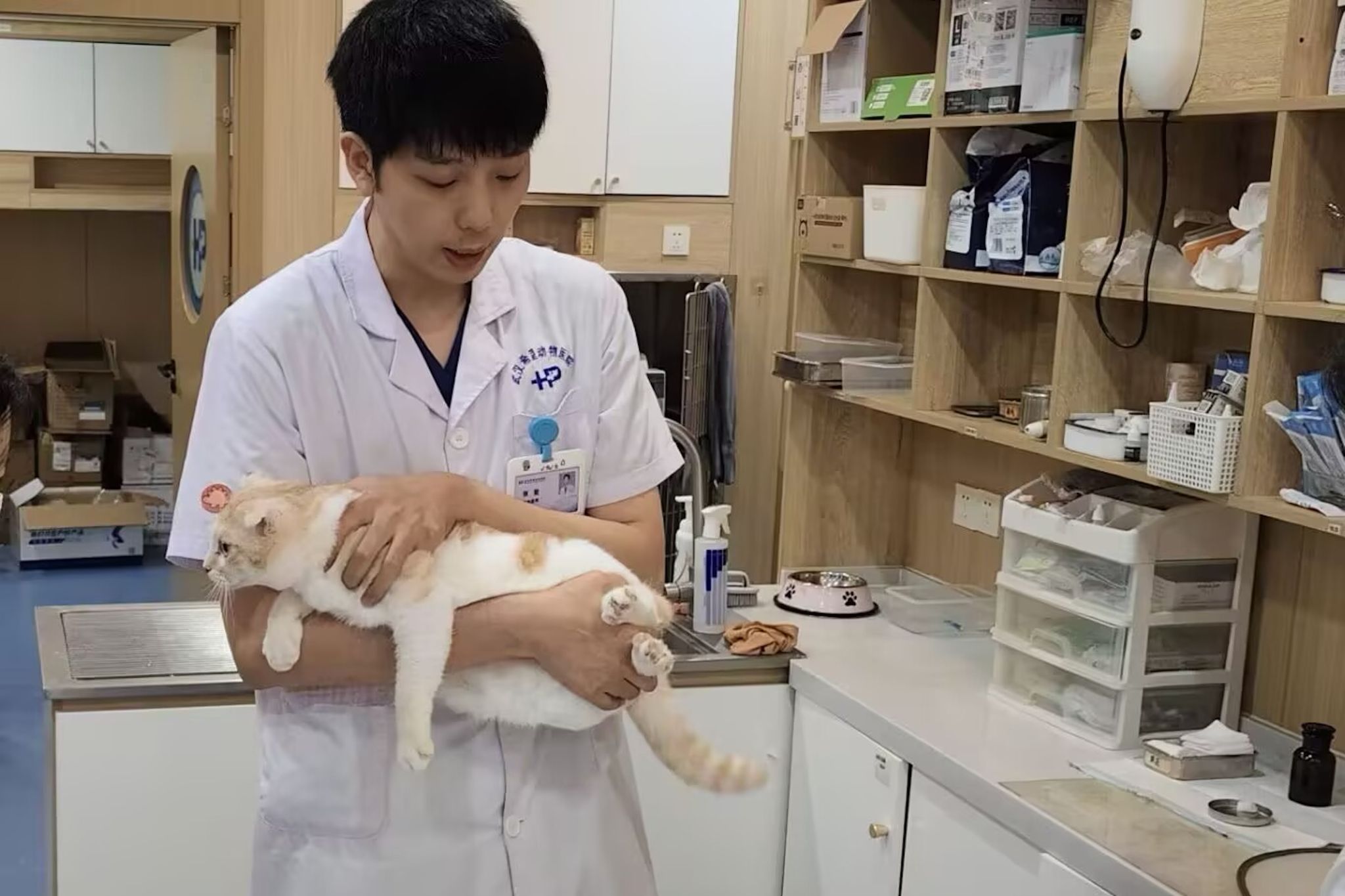活动尾声,张登传授毛巾裹法保定技巧。他一边用毛巾熟练包裹小猫,一边耐心讲解:“包猫力度要适中,让小猫有安全感又不被压迫。用毛巾或专用包猫布,轻轻包裹小猫身体并露出头部,既方便后续操作,也能有效保护小猫。”