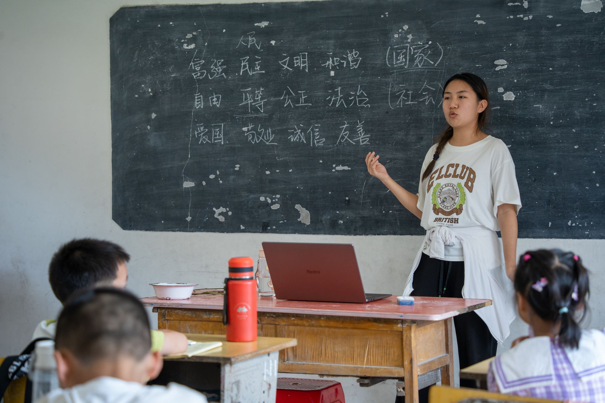 7月9日上午七点,新生陆续报道,各班班主任有序开展“支教第一课”。班主任先组织孩子们进行自我介绍,了解学生们的学习情况,强调在校安全以及课堂纪律。