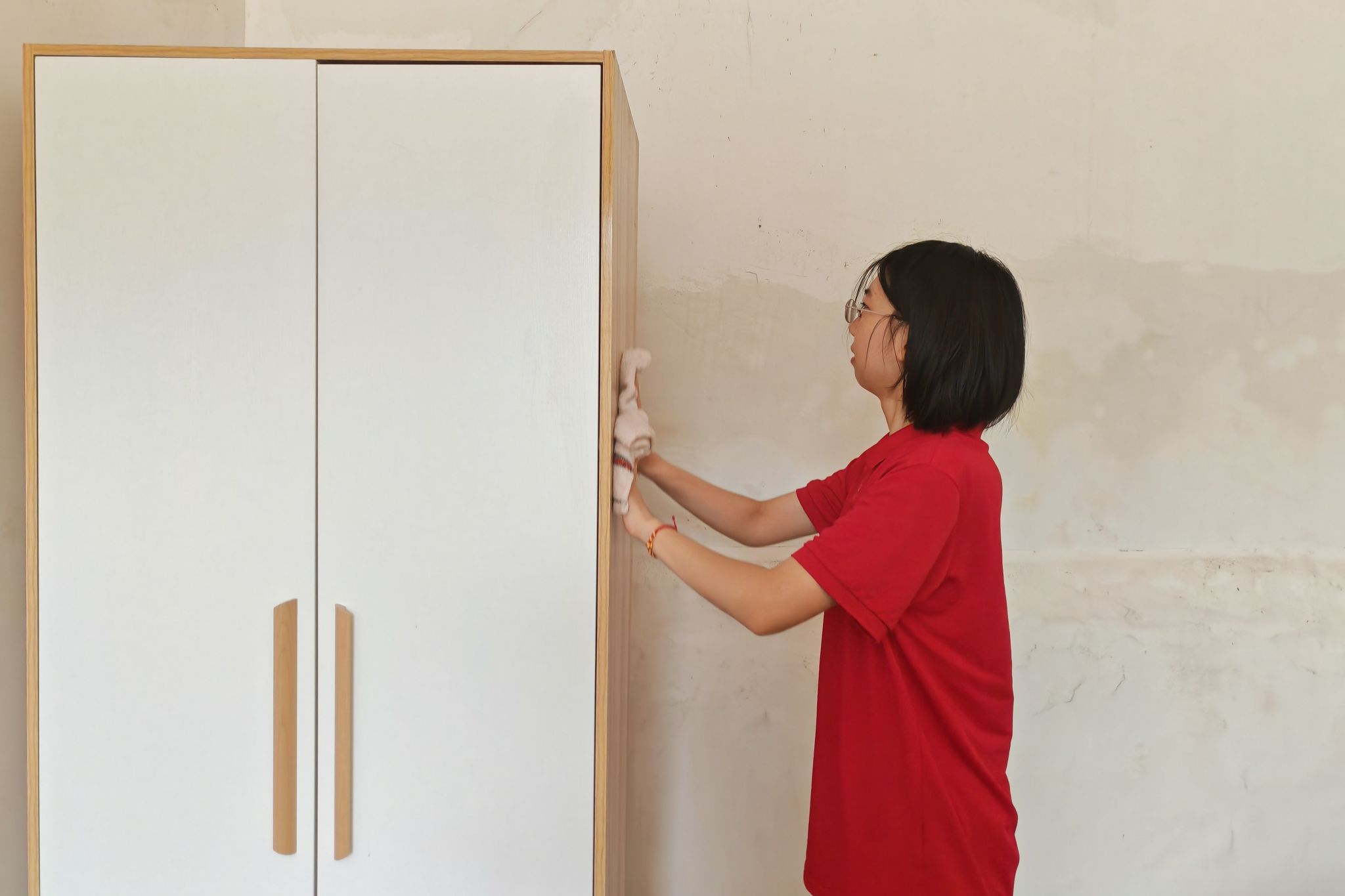 当日清晨,实践团成员从一级隔离点前往武汉科前生物有限公司办公室的路上,李红玲向实践团成员介绍道:“像这样的消毒工作我们每天都要进行一次。”到达办公室后,成员们立即投入消毒工作。按照企业规范,团队以1:200比例精准配制科消消毒液,将抹布与拖把充分浸泡后,对门窗内外、桌柜、冰箱、空调等设施进行全面擦拭,并对地面进行无死角拖洗。室外区域,成员们细致清扫落叶,确保环境整洁。李红玲全程示范并强调:“每日例行消毒是阻断病原传播的关键环节,每一处细节都关乎生物安全底线。”