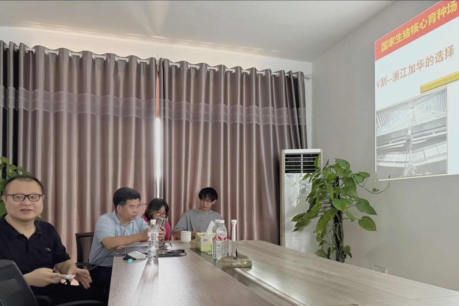 会议之初,加华种猪有限公司总经理华吉琦介绍了集团的发展现状。始建于浙江金华的加华种猪有限公司,是农业农村部认定的“国家金华猪保种场”,也是浙江省农业产业化重点龙头企业。企业目前总投资5000余万元正在打造的现代化养殖基地,坐落于金华市婺城区汤溪镇生态农业园区,占地面积达15000平方米,设计产能存栏基础母猪600头、公猪30头,年提供优质金华猪种猪6000头、商品猪9000头,采用一流的设备设施及工艺、高标准建设一个标准化、规模化、良种化、设施化、 循环化、数字化的国家金华猪保种场。