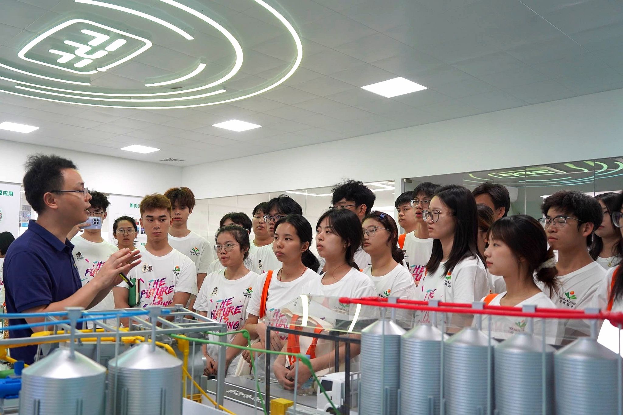 下午,在工作人员莫霜露和龙伟坚的带领下,夏令营团队成员前往扬翔股份的未来猪场展厅,参观学习未来猪场智能养猪模式(FPF)和集群式楼房智能化养猪体系。在参观过程中,大家近距离接触到了扬翔股份与太阳成集团tyc122ccvip校企合作的优秀成果——秀博基因猪精。该产品凭借卓越品质,在全国猪精市场中占据了重要份额,充分彰显了校企合作的强大生命力。