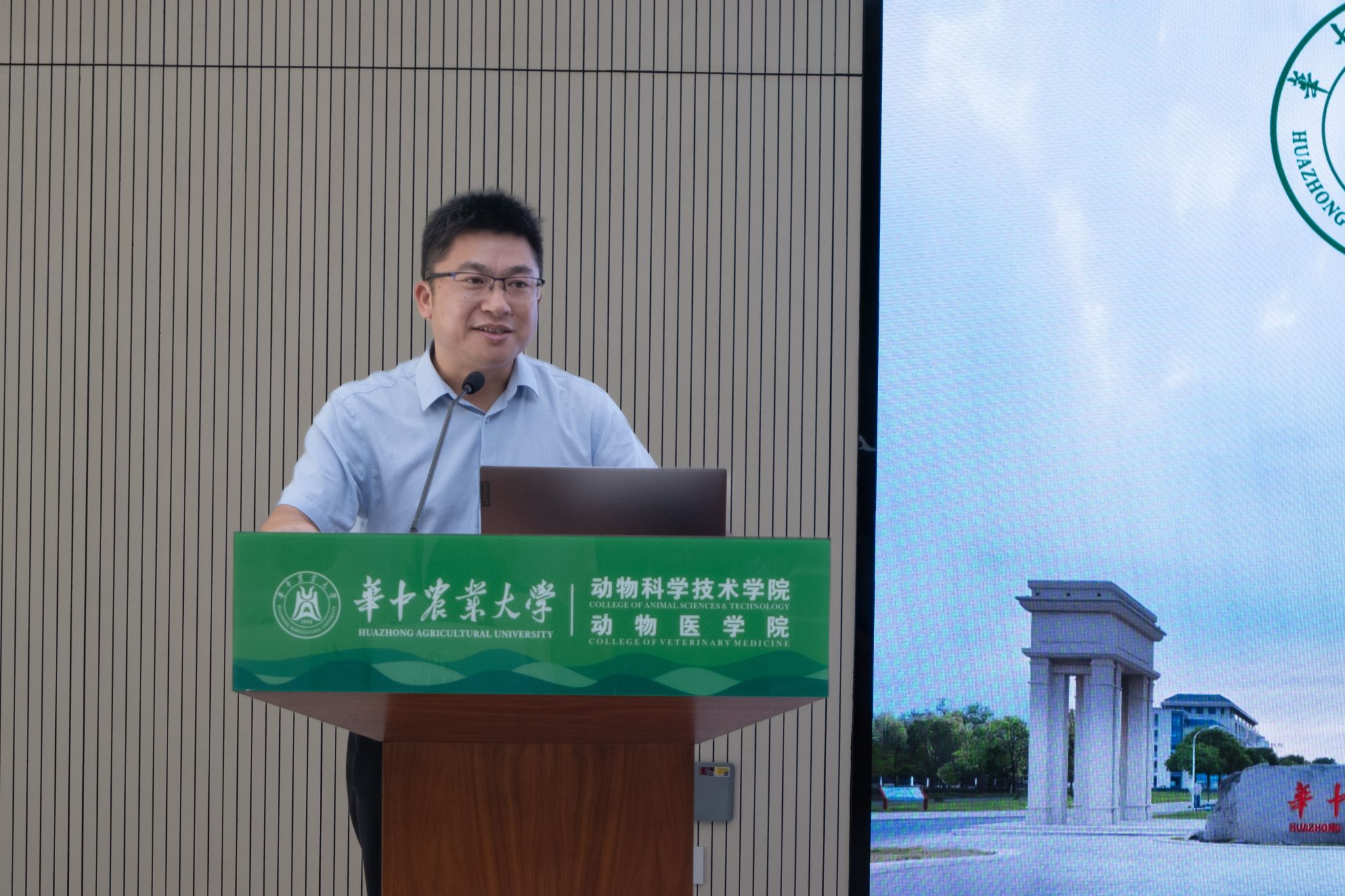 谈及动科动医学院的发展历程,任竹青强调“畜牧兽医是一家,两学科深度融合、协同发展”,并系统介绍了学院在师资队伍、人才培养和校企合作等方面的举措。他特别指出,学院探索形成的华农-扬翔产科教深度融合发展模式、华农-科前“三创”产学研一体化模式,已成为农牧行业校企合作的典范。学院始终秉持“创新、创造、创业”的办学理念,聚焦一流建设,推动“五大融合“,以高质量的党建引领学院事业的高质量发展。