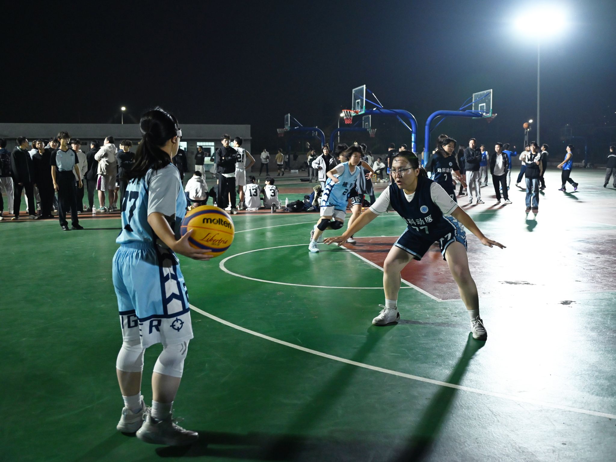 (通讯员:蒋可亭 摄影:任清竹)10月28日晚上,“狮子山杯”新生女子篮球赛半决赛在第三运动场拉开战幕。动科动医学院女篮对战植科学院女篮,双方经过激烈角逐,最终动科动医学院以3:7惜败。
