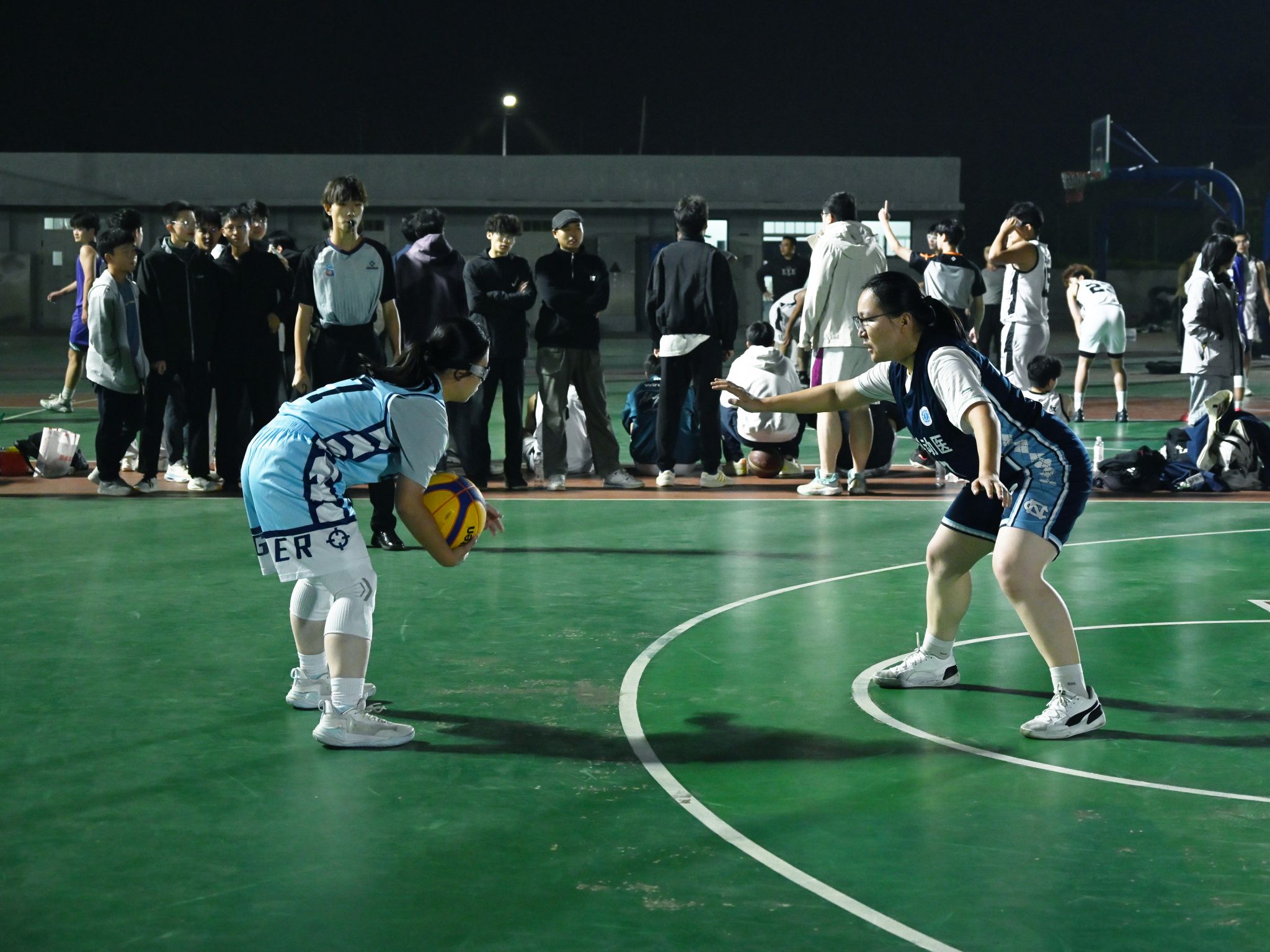 比赛伊始,动科动医女篮迅速进入状态。77号阿丽娜尔积极防守完成抢断,与36号汪涵默契传切配合,拿下全场首分,点燃球队士气。紧接着,全队防守严密,成功限制住对方进攻,造成植科学院进攻超时违例,进一步巩固领先优势。