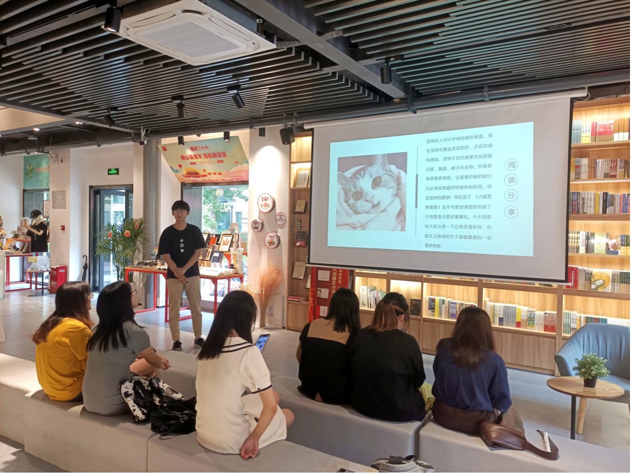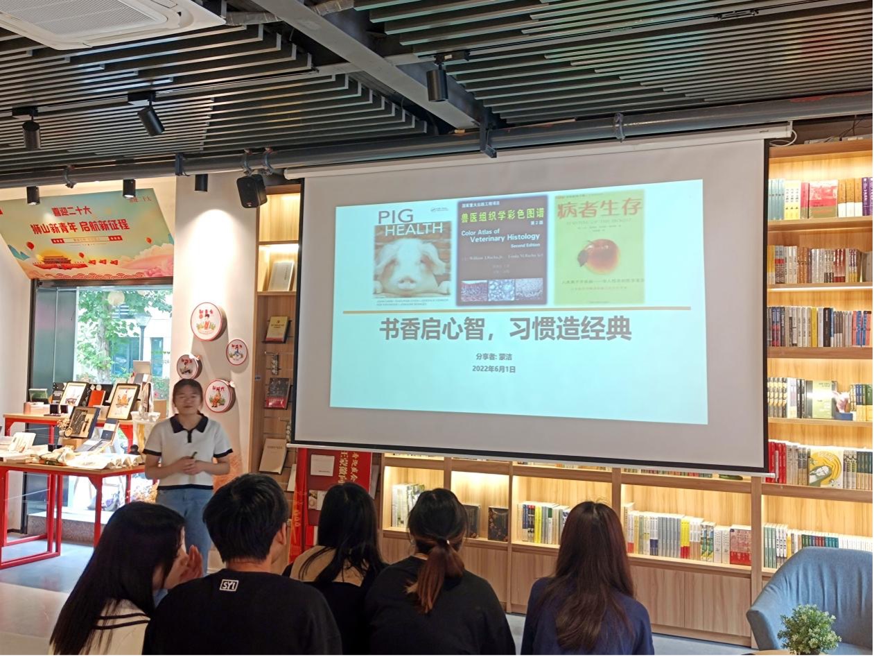 不少同学进行了专业书籍的阅读和分享。蒙洁同学分享专业书籍《兽医组织学彩色图谱》《病者生存》,介绍制作切片的关键步骤和目前切片在研究领域的重要性,谈到人类基因进化可能源于疾病。沈琦同学分享《宠物营养需要》,谈到目前宠物饲料的营养成分——OMEGA-3和牛磺酸,及其对于机体发育的重要程度及缺乏其的不利影响。