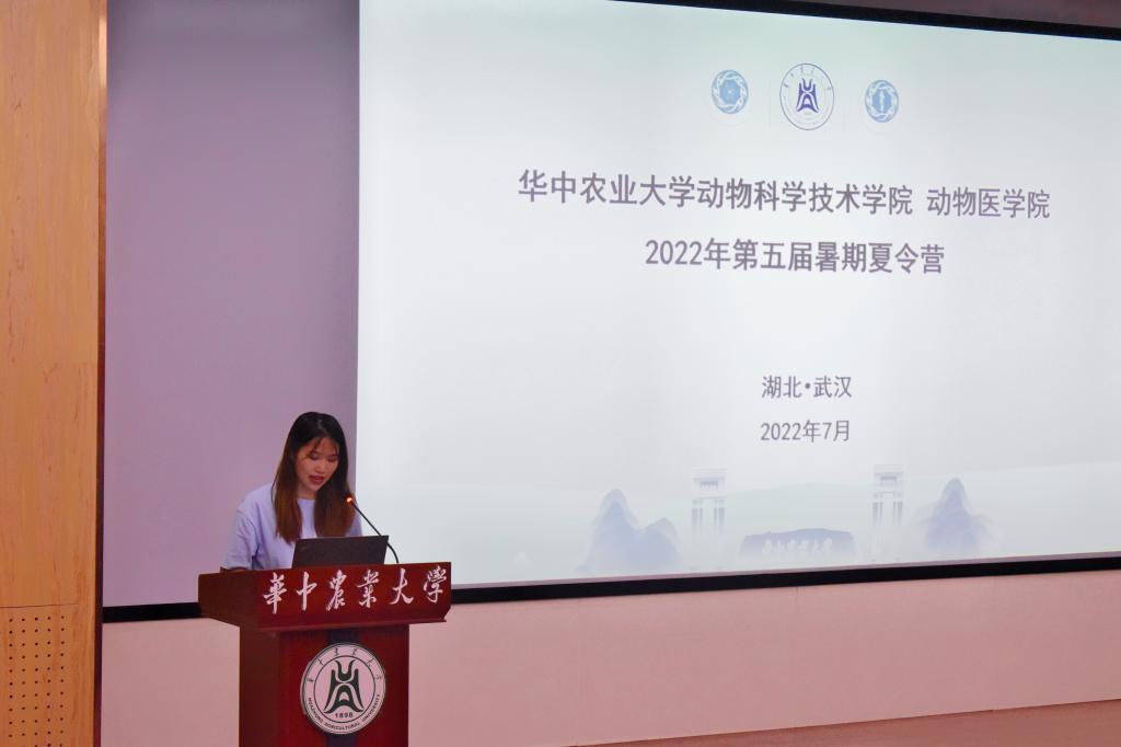 动医1营的班主任滑国华老师代表夏令营班主任老师们发言。她讲道:“人生三大遗憾,莫过于遇良师不学,遇良友不交,遇良机不握。千里马遇到伯乐才能奔腾千里,人生遇到名师方能决胜未来。当下,良师、良友和良机都摆在面前,希望各位营员们都能在这三天中找到自己未来奋斗的目标和自己心仪的老师。”她还提到:“即将到来的短暂分别是为了未来更好的重逢,这里有美丽的狮山、浪漫的绿道、诗情画意的校园、双一流A+的学科、知识渊博的老师、国际一流的实验平台和国家级的实习基地,在不远的未来,还将看到各位靓丽的身影。这里是学术的殿堂、人生的加油站、通往成功的阶梯,我们在美丽的太阳成集团tyc122ccvip校园、团结奋进求是创新的动科动医学院等大家再来。”