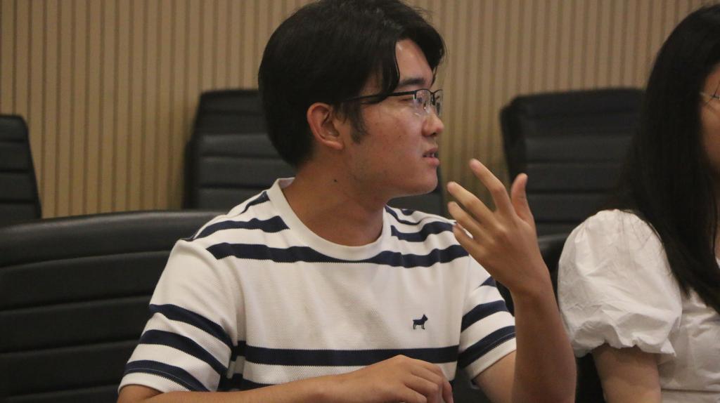 会议开始,辅导员汪楚琪老师进行开场,强调了新闻传播对于校园文化建设和校院信息传递的重要性。随后,高钰姗从新闻消息的特点、写作要求、写作步骤和注意事项等方面进行了指导与分享,她强调:“首先要评估新闻事件的价值以决定写什么、怎么写;其次要建立节点意识,把握重要事件主动采写;最后是消息的写作需要有目的、有侧重、有选择地写。”