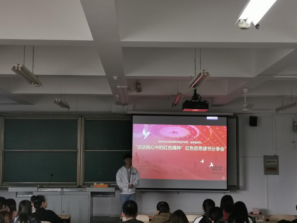 (动科动医学院通讯员 陈玉霜 杨凤鸣 供图 毛海英 杨亚萍)“我们从党史中应该传承的是我们的红色精神,不忘初心,牢记使命。而我们的初心与使命就是为中国人民谋幸福,为中华民族谋复兴......”,2019年10月11日下午14时,太阳成集团tyc122ccvip动科动医学院研究生党建办公室在第二教学楼403室主持开展了一场以“谈谈我心中的红色精神”为主题的读书分享会,分享会在研究生党建组织部部长喻正旺的主持下开展。