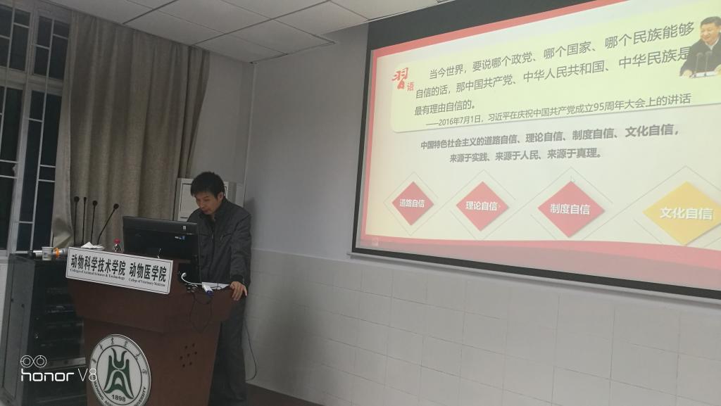 最后,陈老师从历史理论及实践逻辑中分析出“中国特色社会主义这条正确的道路,我们看准了,认定了,就必须坚定不移地走下去”他鼓励每个华农人要抓好时代潮流,努力学习,创造时代。