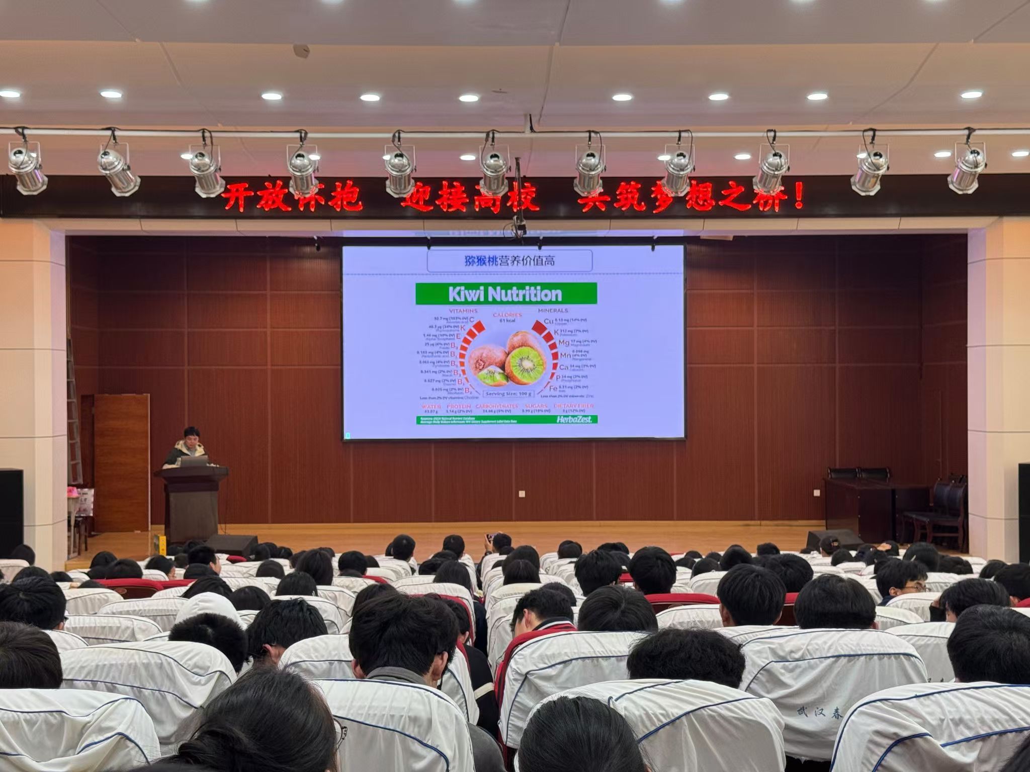 “猕猴桃和奇异果为什么差价这么大?”园艺林学学院副教授曾云流的问题引发了同学们的思考。他为同学们带来《猕猴桃的前世今生》的专题科普报告,以浅显的语言详细阐述了猕猴桃的营养价值,并谈到了国产猕猴桃在消费者体验上的不足。针对如何让猕猴桃实现即买即食的问题,曾云流介绍了猕猴桃即食控熟技术,提升了同学们对农业科技创新的认识,感受科研技术落地应用的魅力。曾云流还专门带来猕猴桃与同学们分享了猕猴桃的便捷食用方法,活动现场气氛热烈。
