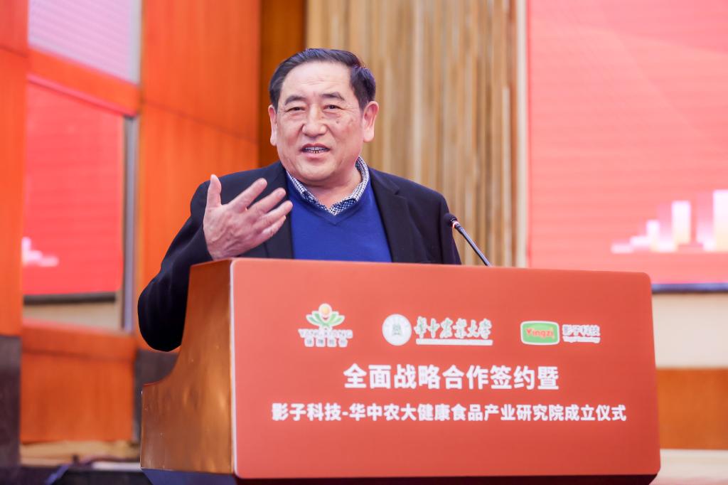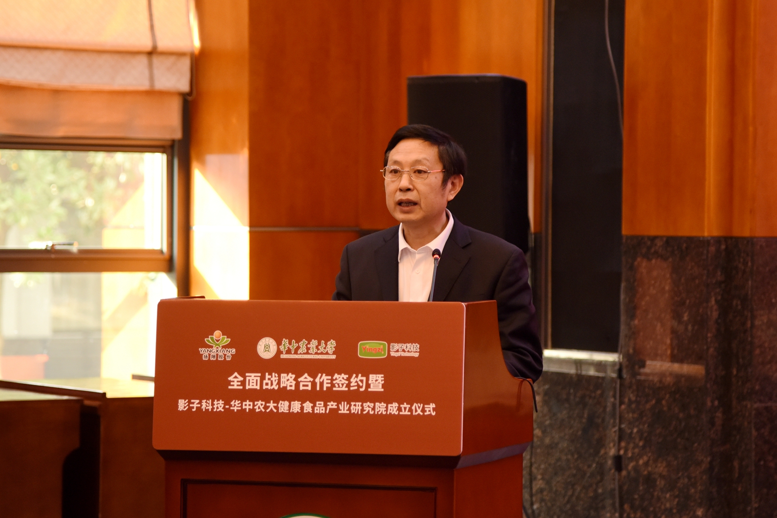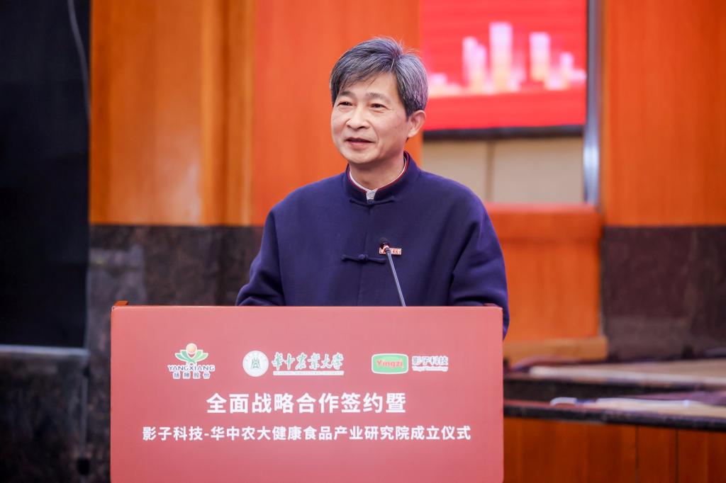 施亮在致辞中表示,再次回到母校感到非常亲切。他回顾了华农和扬翔10余年的合作历程和所取得的成果,他说:“昨日辉煌,皆为序章,凡是未来,皆有可期。作为一名曾经的华农学子,如今的扬翔人,我倍感骄傲。”就未来双方合作,他提出“产学研融合既是产业链、教育链、人才链有机衔接的发展方向,也是让科研成果不断契合产业发展的有力抓手”,今后要加快数字化发展,协同推进数字产业化和产业数字化转型,积极响应国家号召、强化协同创新、整合优势资源、主动服务国家乡村振兴战略的重大举措,为实现“健康、安全、美味、便利”使命而共同努力。施亮表示,影子科技-华中农大健康食品产业研究院将开展深入研究,有力推动技术创新、产业创新、应用创新,为中国食品安全做出新的更大的贡献。
