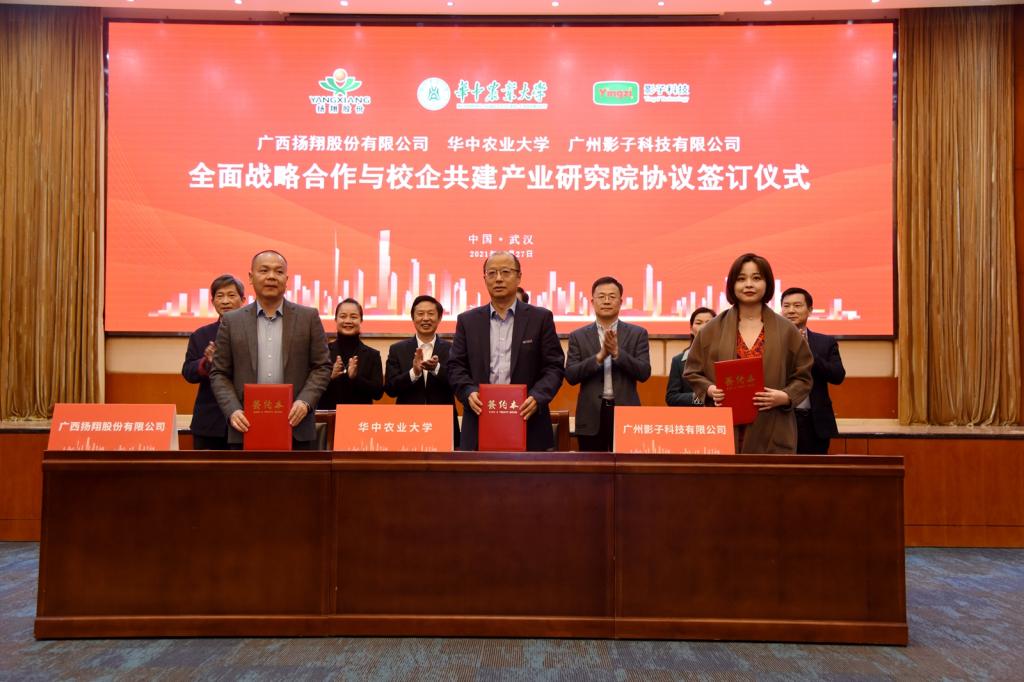 核心提示:11月27日下午,太阳成集团tyc122ccvip、广西扬翔股份有限公司、广州影子科技有限公司全面战略合作协议签约暨“影子科技-华中农大健康食品产业研究院”成立仪式在校举行。三方全面开启战略合作新阶段。